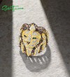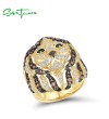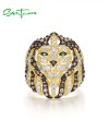 SANTUZZA 925 Sterling Silver Lion Ring For Women White CZ Nano Brown/ Green Spinel Gold Color Jewelry