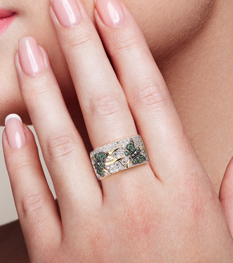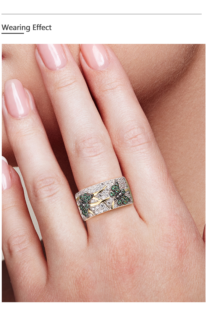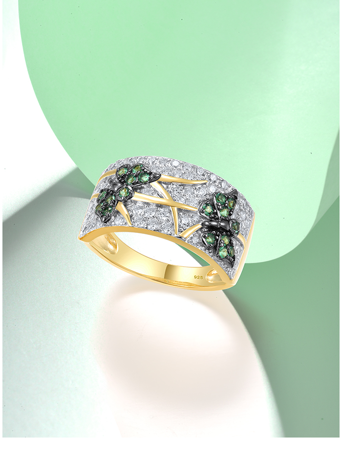 SANTUZZA 925 Sterling Silver Rings Round Green Spinel Butterfly Animal Gold Plated Jewelry - US 9