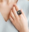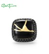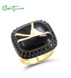 SANTUZZA 925 Sterling Silver Rings Gold Color Black Spinel Edgy Handmade Enamel Ring Jewelry