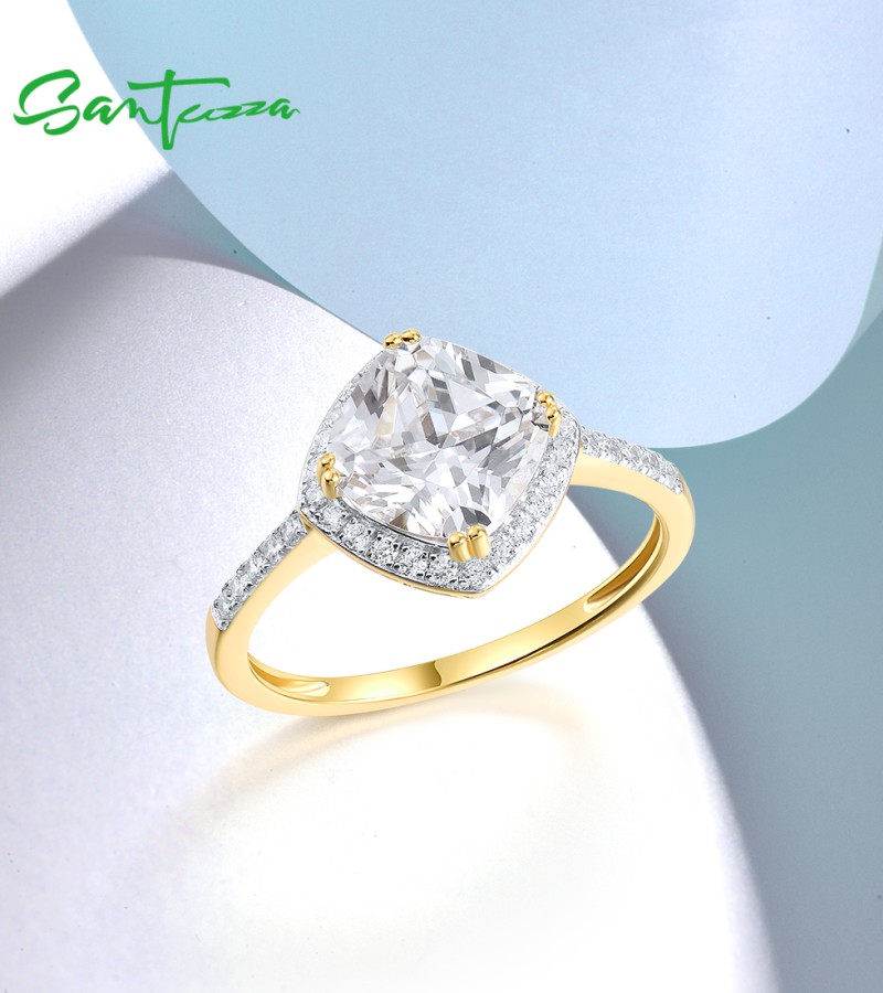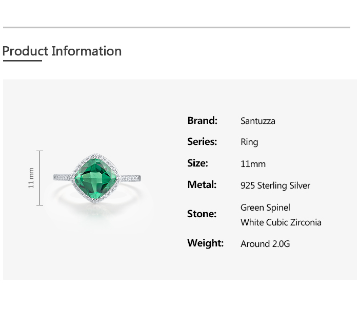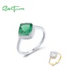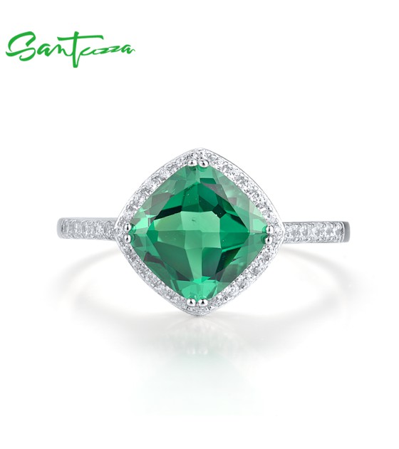 SANTUZZA 925 Sterling Silver Ring For Women White Cubic Zirconia Green Spinel Fine Jewelry