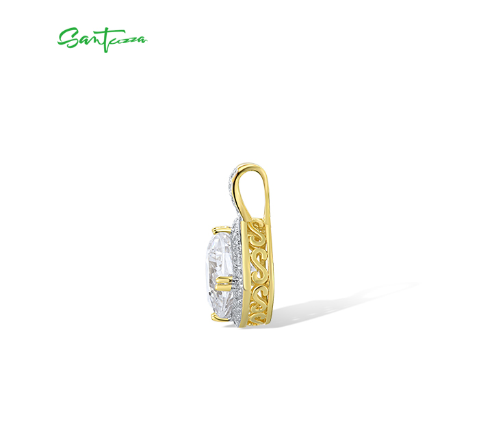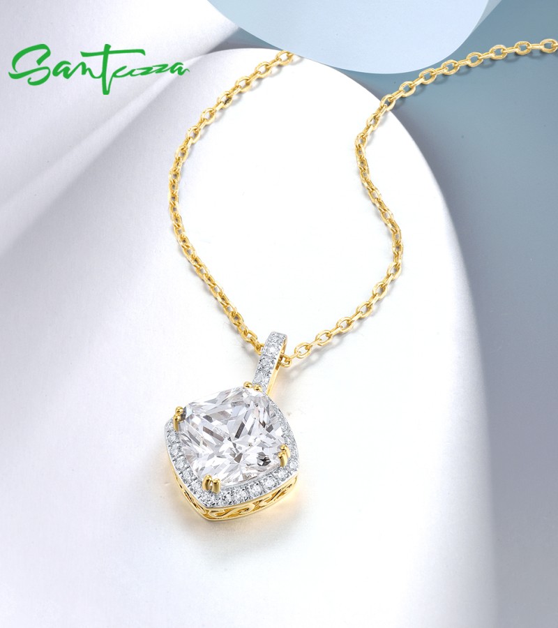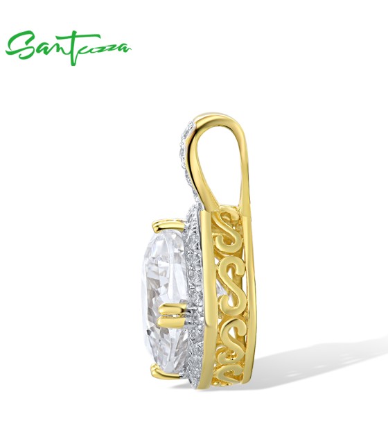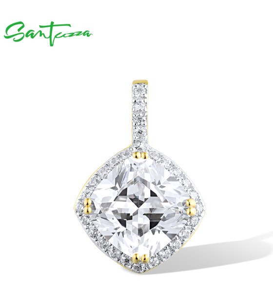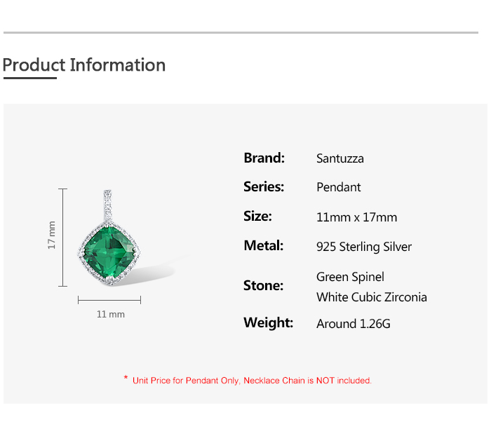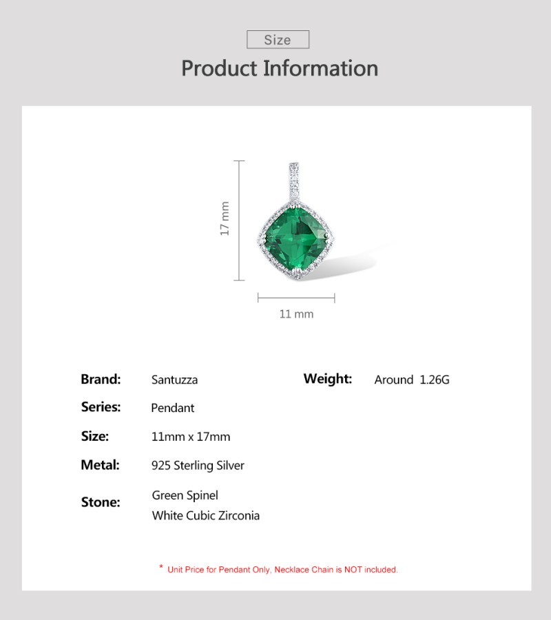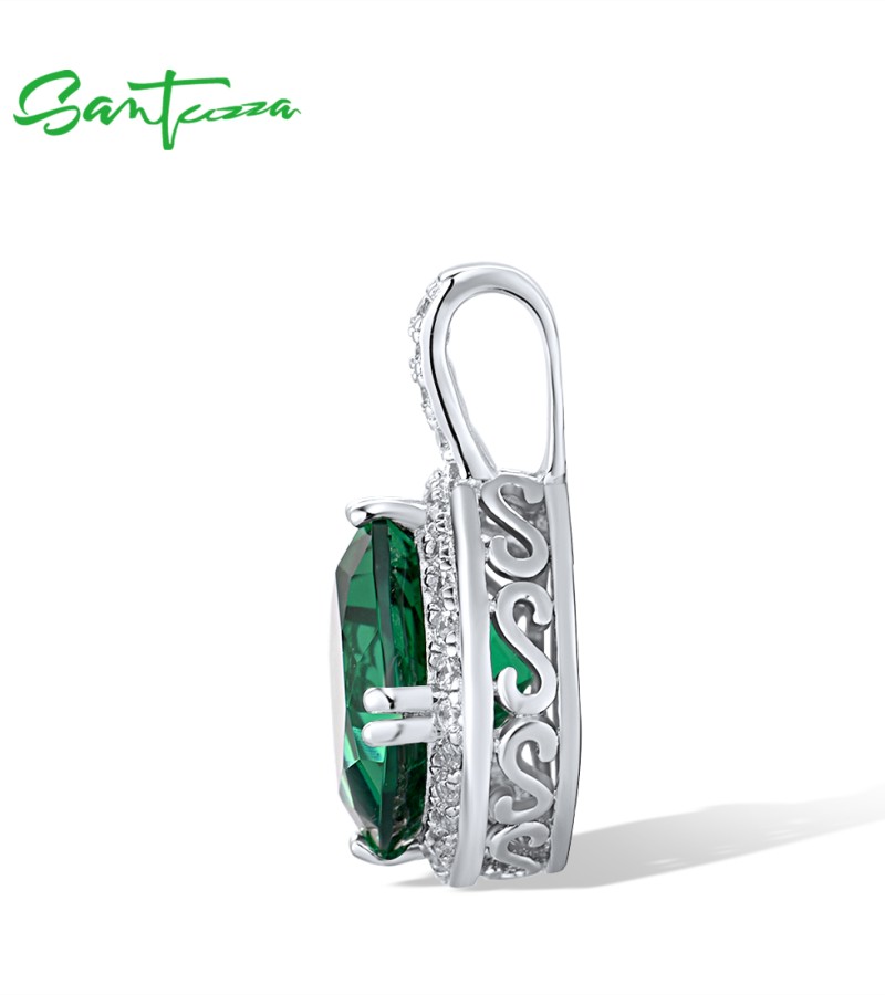 SANTUZZA 925 Sterling Silver Pendant for Women Green Spinel White Cubic Zirconia Fine Jewelry