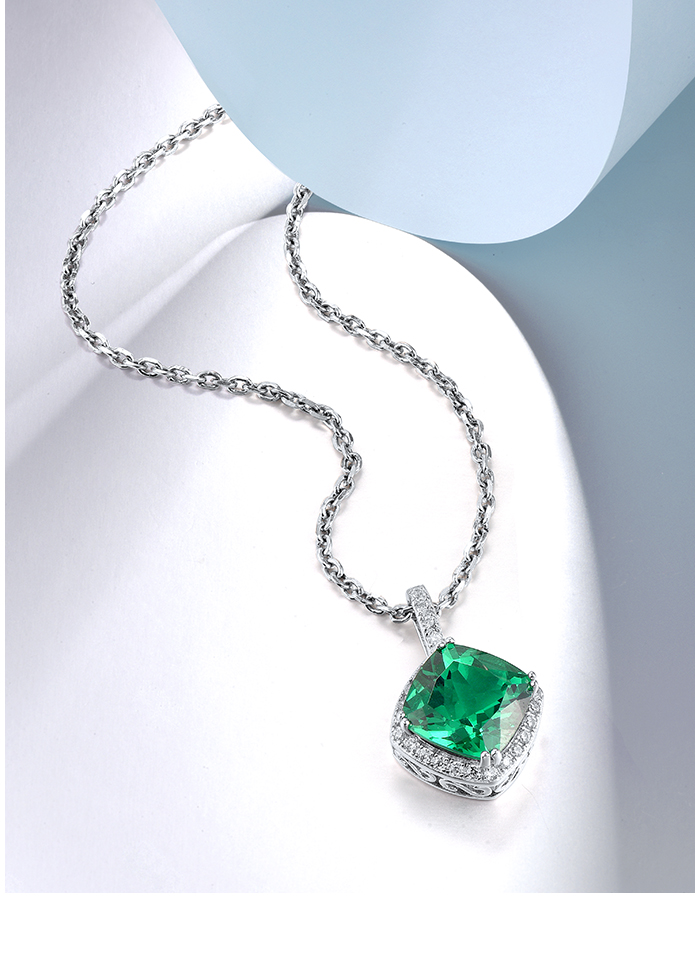 SANTUZZA 925 Sterling Silver Pendant for Women Green Spinel White Cubic Zirconia Fine Jewelry - Green Stones/Silver Color