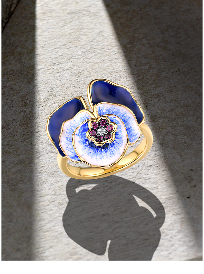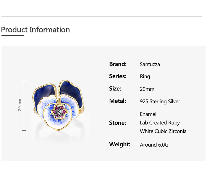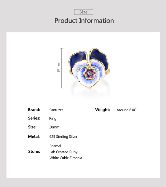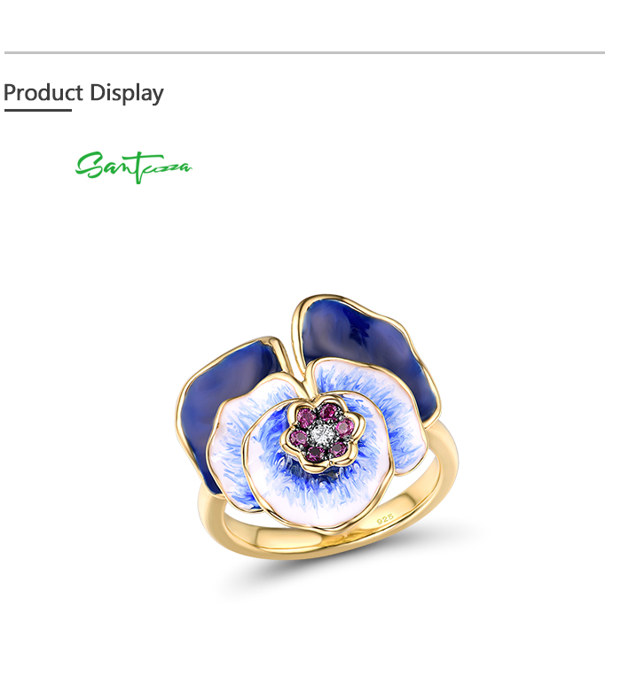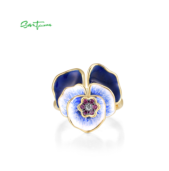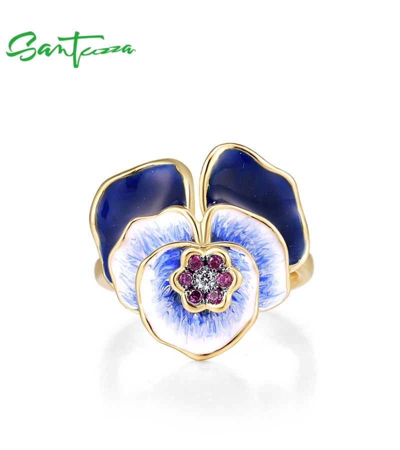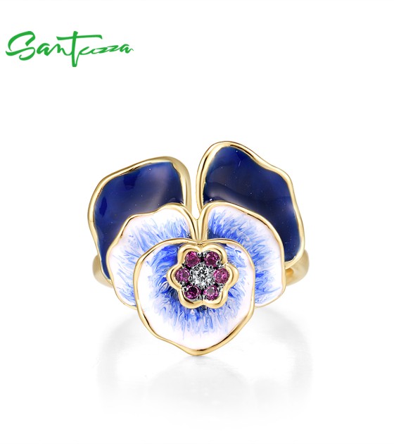 SANTUZZA Silver Ring 925 Sterling Silver Blue Blooming Flower Jewelry Handmade Enamel