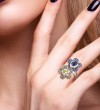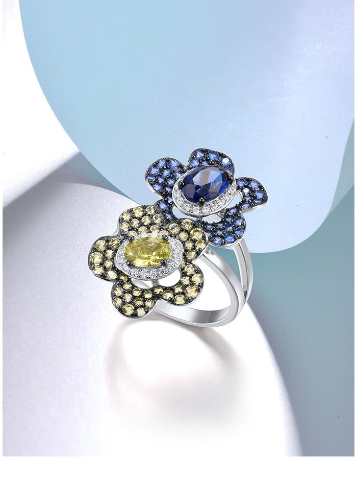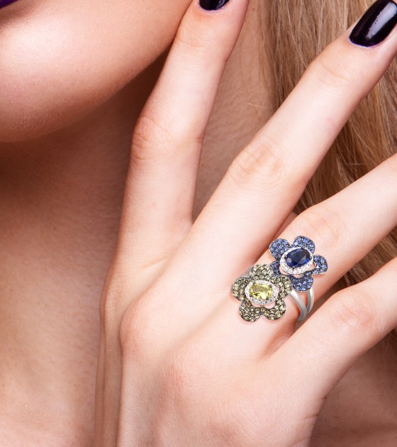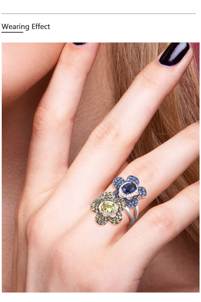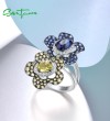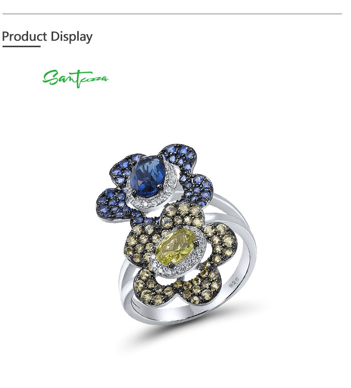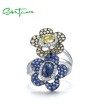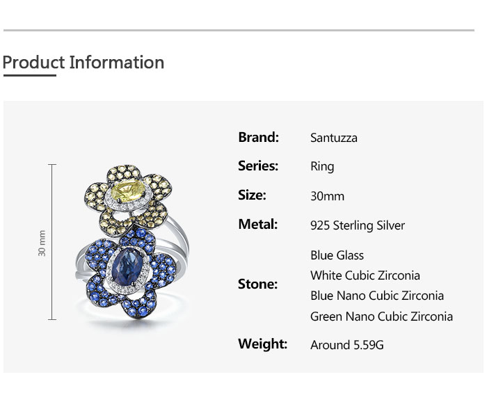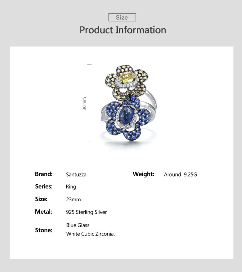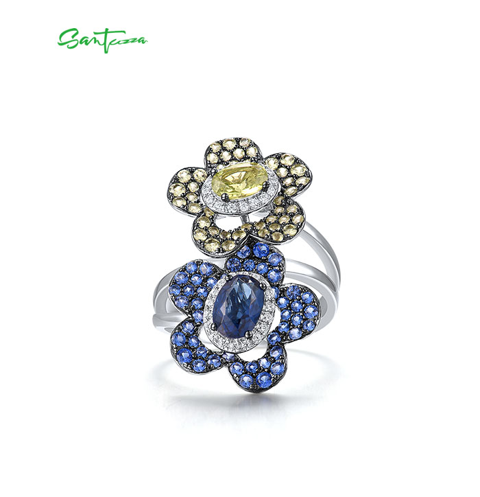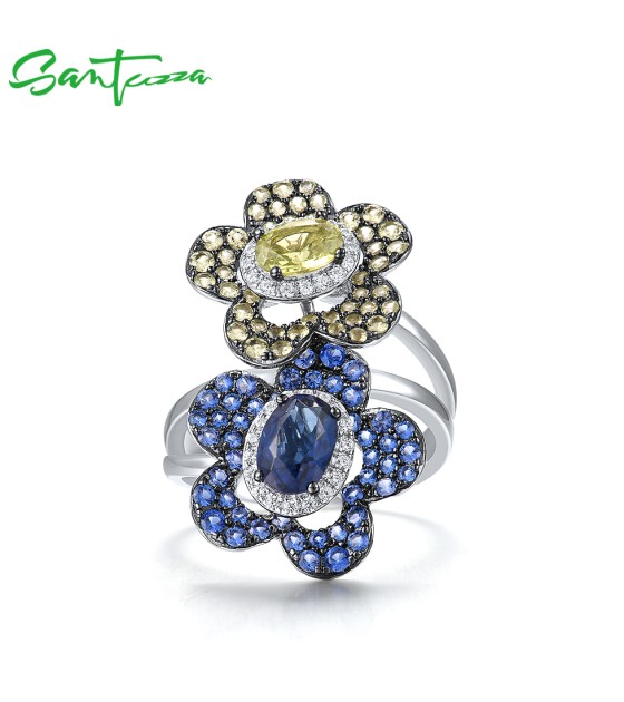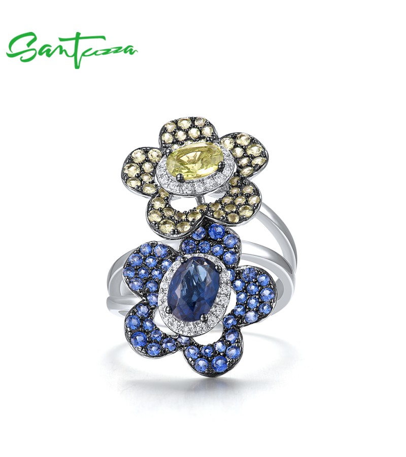 SANTUZZA Silver Rings 925 Sterling Silver Blue Green Stones Twin Flower Jewelry