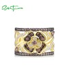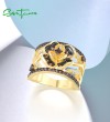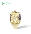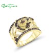 SANTUZZA 925 Sterling Silver Rings Nano Brown Spinel White CZ Gold Color Flower Ring Jewelry