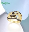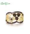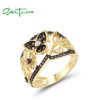 SANTUZZA 925 Sterling Silver Rings Nano Brown Spinel White CZ Gold Plated Flower Jewelry