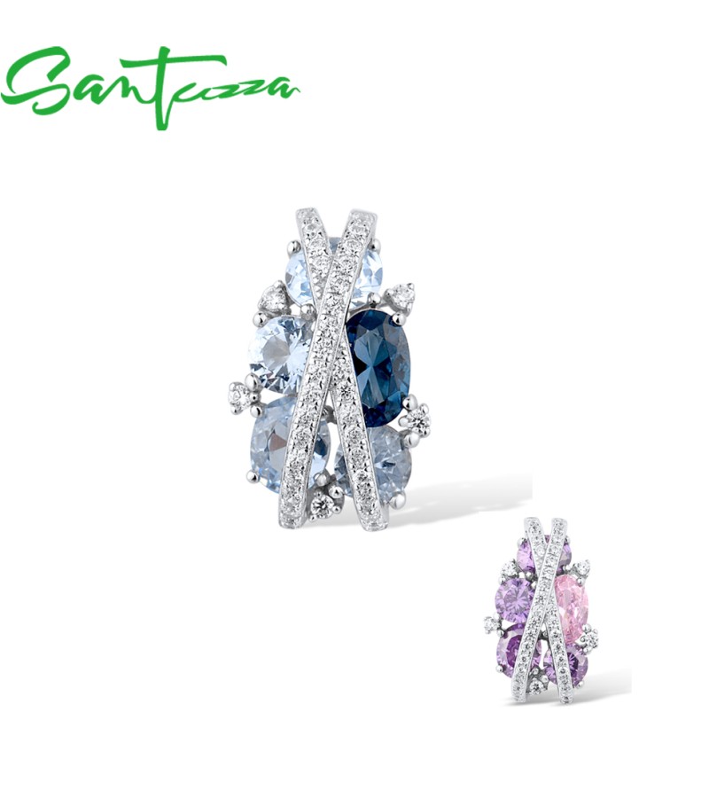 SANTUZZA 925 Sterling Silver Earrings Blue Cubic Zirconia Jewelry - Pink and Red Stones