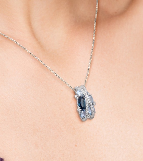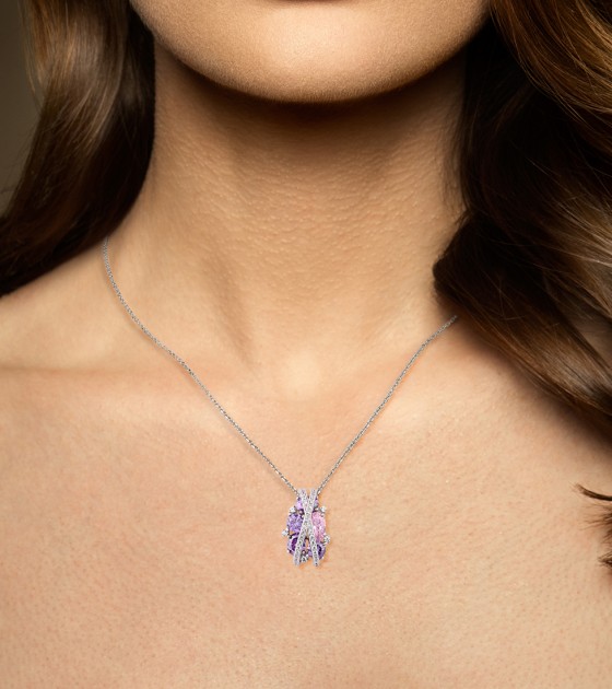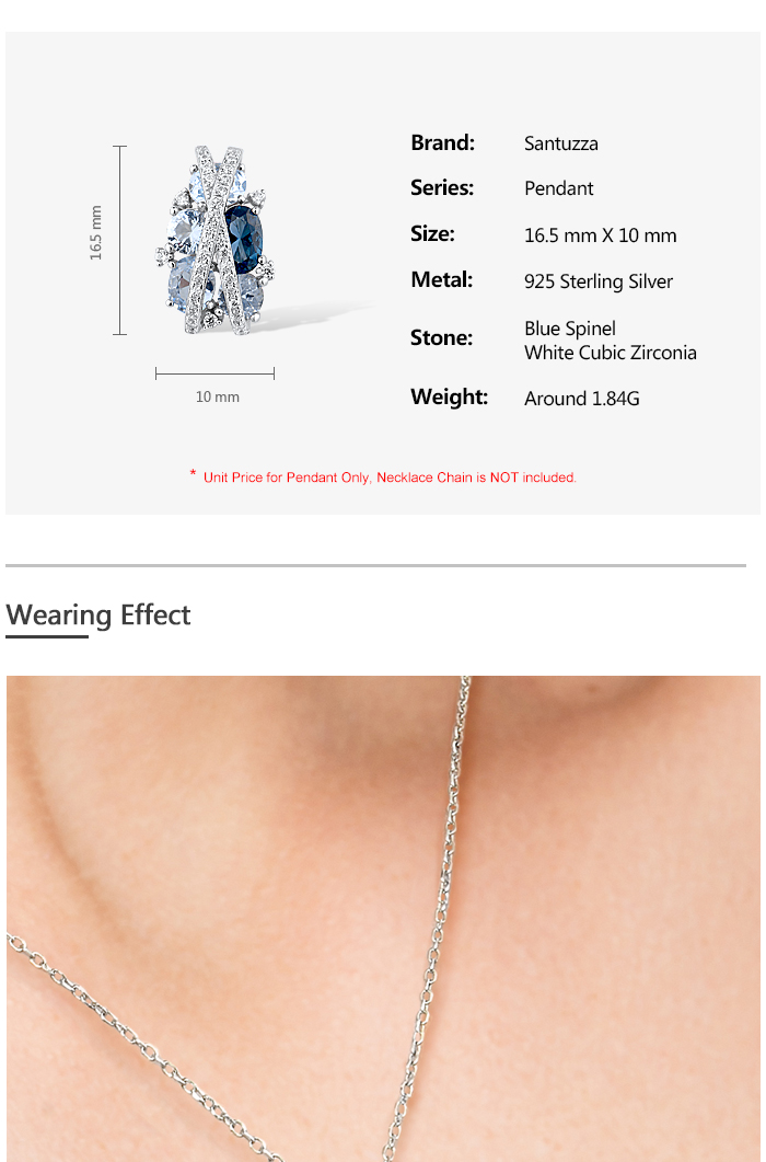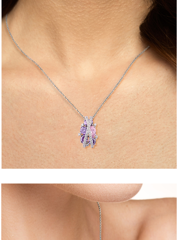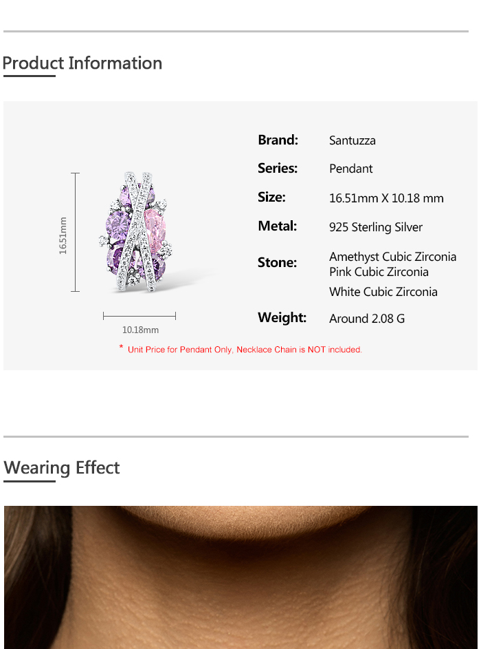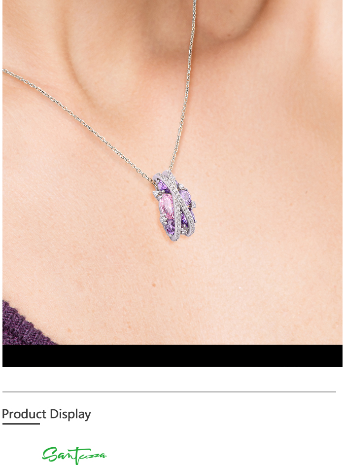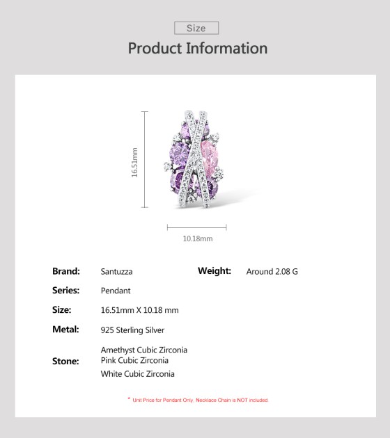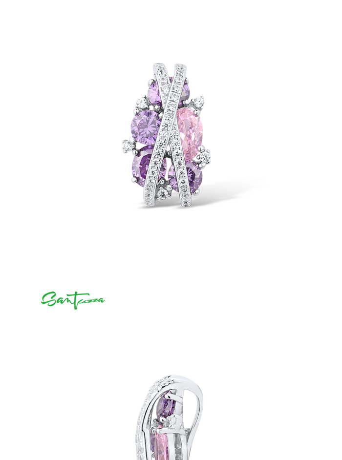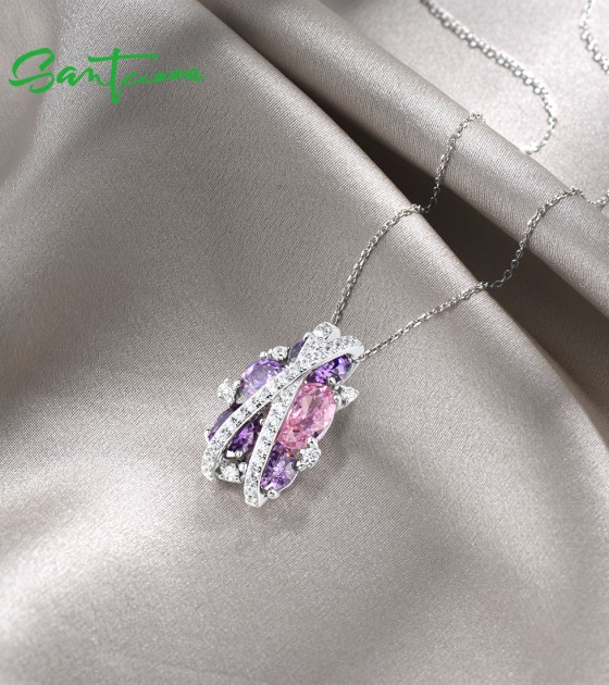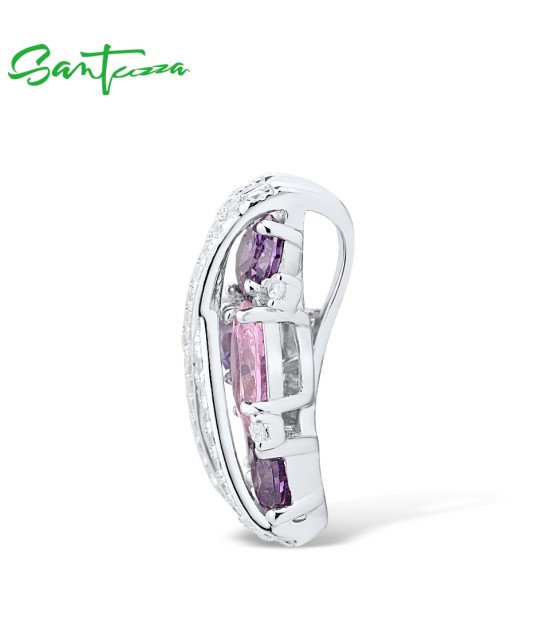 SANTUZZA 925 Sterling Silver Pendant Sparkling Blue Purple Pink White Cubic Zirconia Jewelry