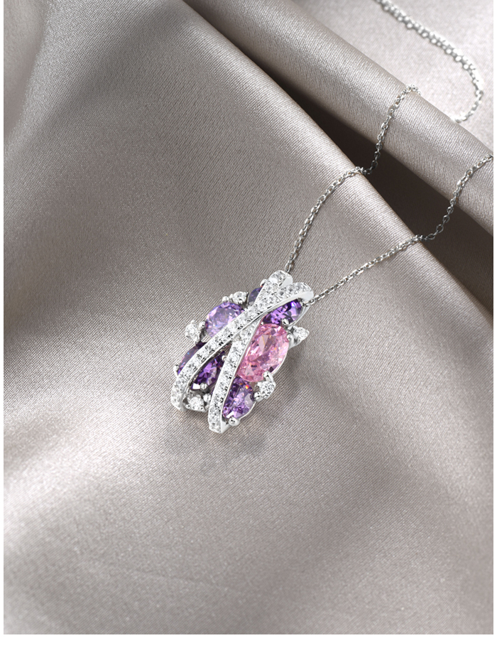 SANTUZZA 925 Sterling Silver Pendant Sparkling Blue Purple Pink White Cubic Zirconia Jewelry - Pink and Red Stones