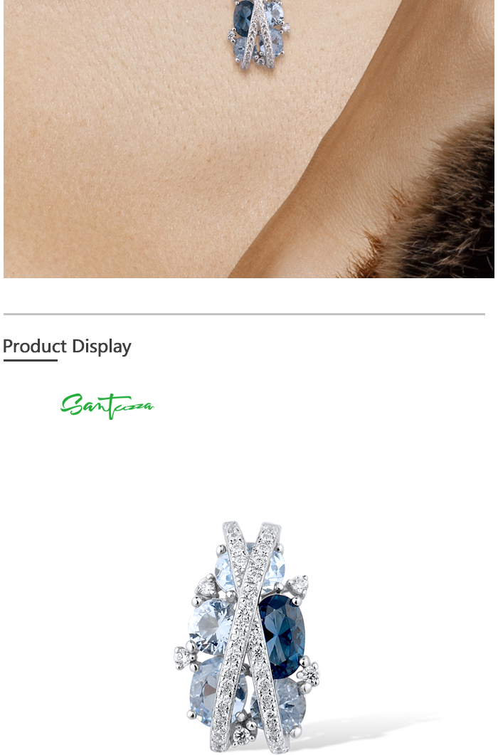 SANTUZZA 925 Sterling Silver Earrings Blue Cubic Zirconia Jewelry - Blue Stones