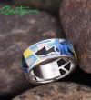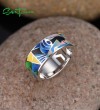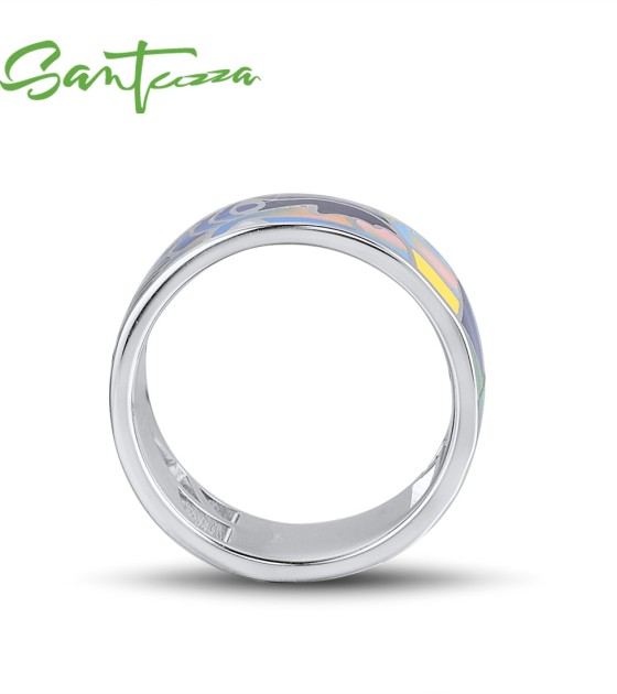 SANTUZZA Silver 925 Sterling Silver Rings Face HANDMADE Colorful Enamel Fine Jewelry - US 7