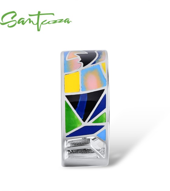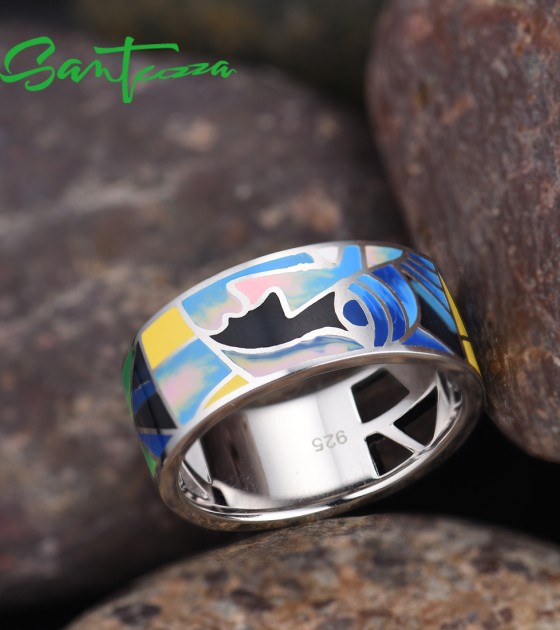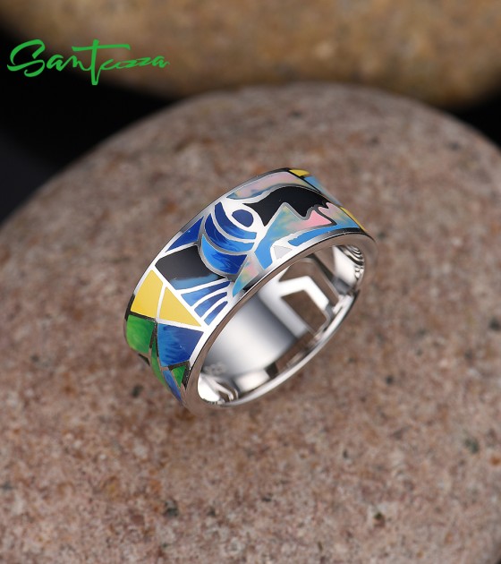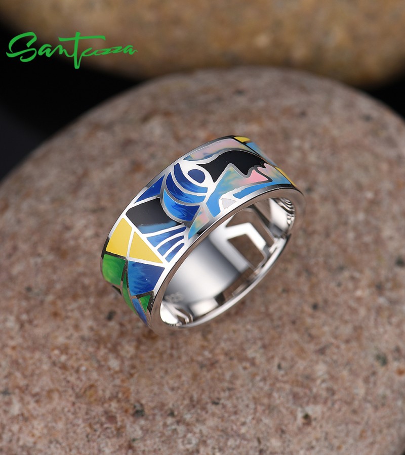 SANTUZZA Silver 925 Sterling Silver Rings Face HANDMADE Colorful Enamel Fine Jewelry