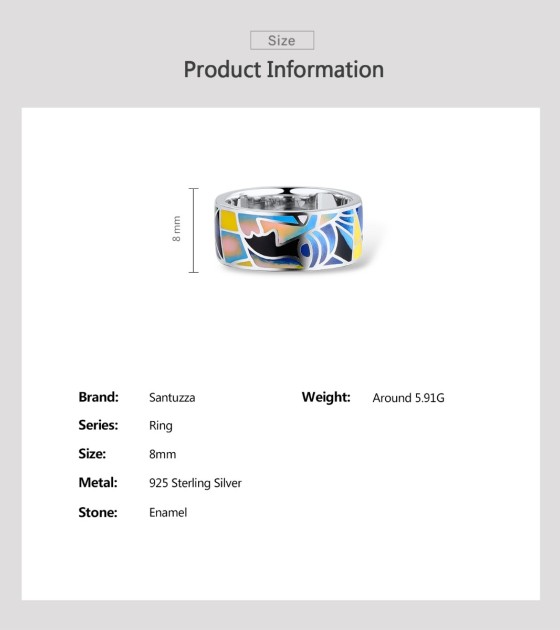 SANTUZZA Silver 925 Sterling Silver Rings Face HANDMADE Colorful Enamel Fine Jewelry - US 8