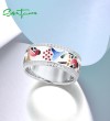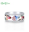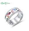 SANTUZZA 925 Sterling Silver Rings White Cubic Zirconia Red Bird Enamel Rings Jewelry