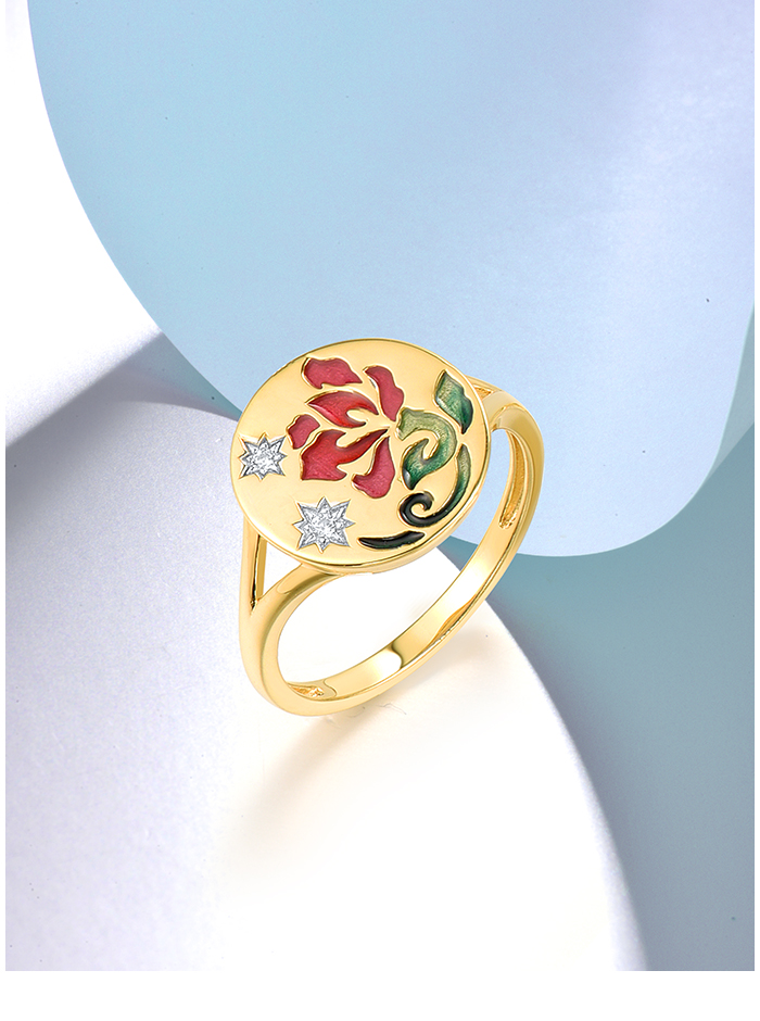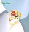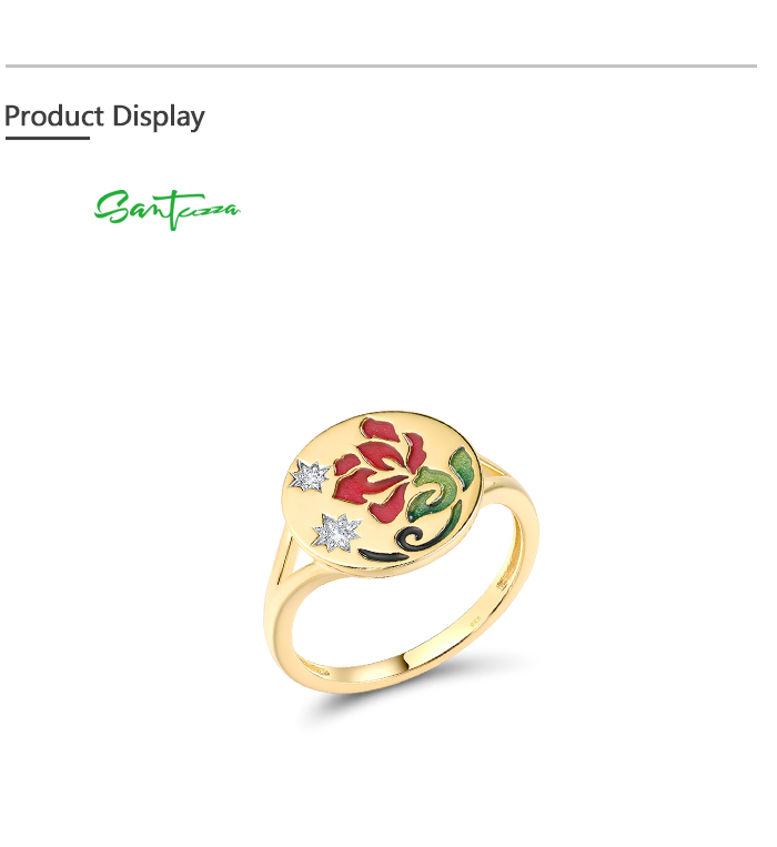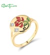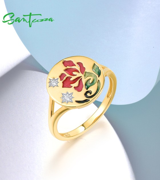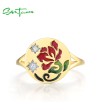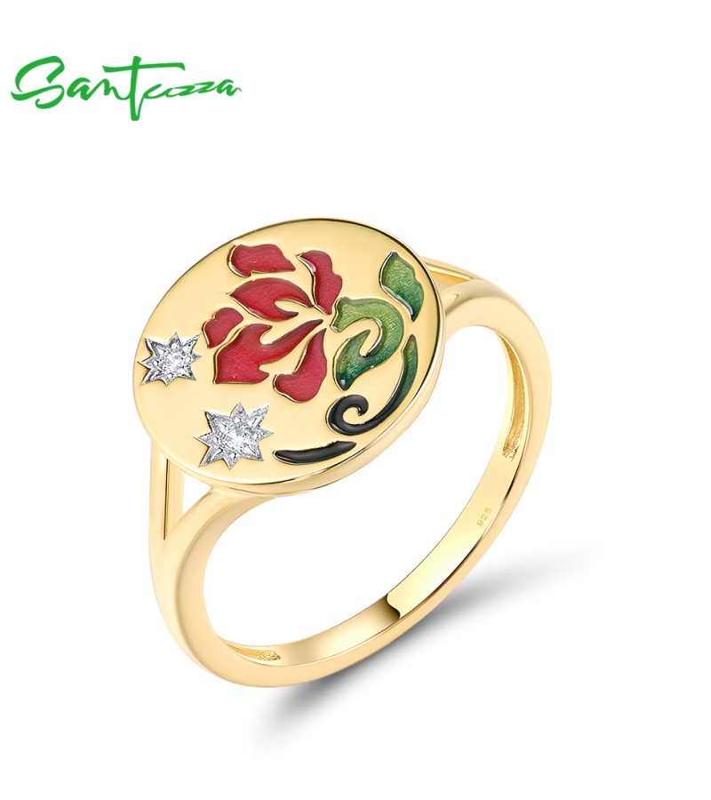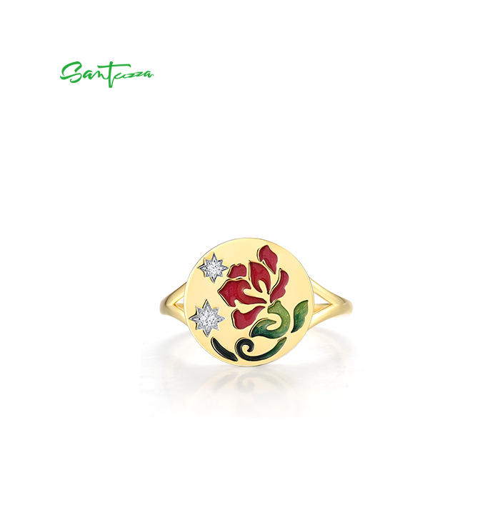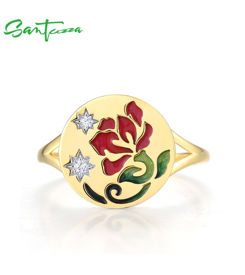 SANTUZZA 925 Sterling Silver Rings White CZ Red Enamel Flower Jewelry