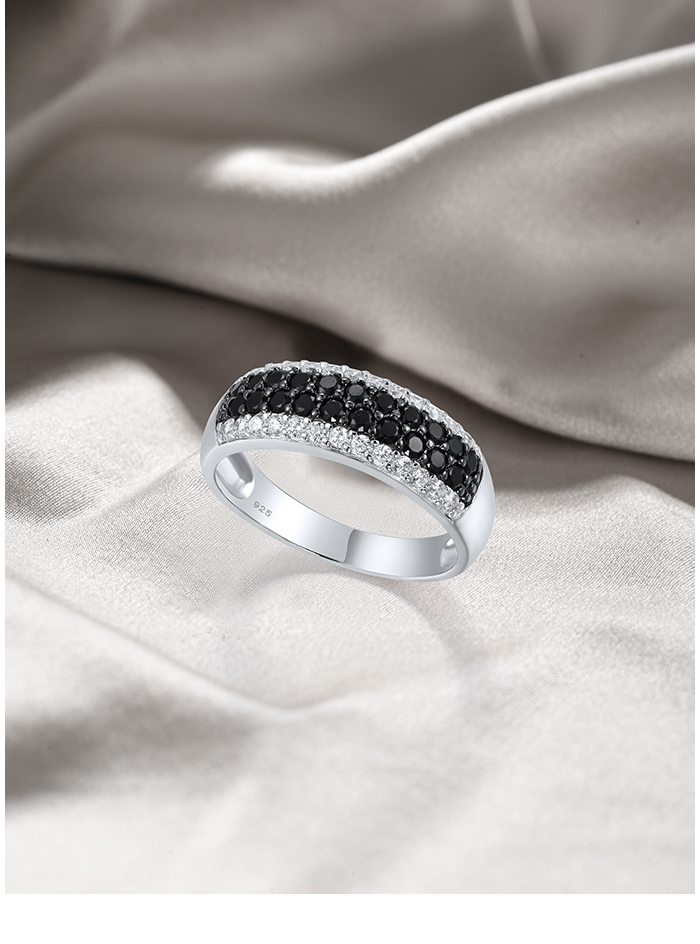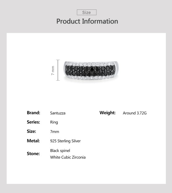 SANTUZZA 925 Sterling Silver Rings Black Spinel White Cubic Zirconia Band Ring Jewelry - US 9