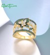 SANTUZZA 925 Sterling Silver Rings Green Spinel Butterfly Ring Jewelry