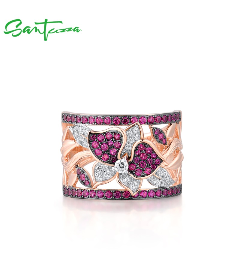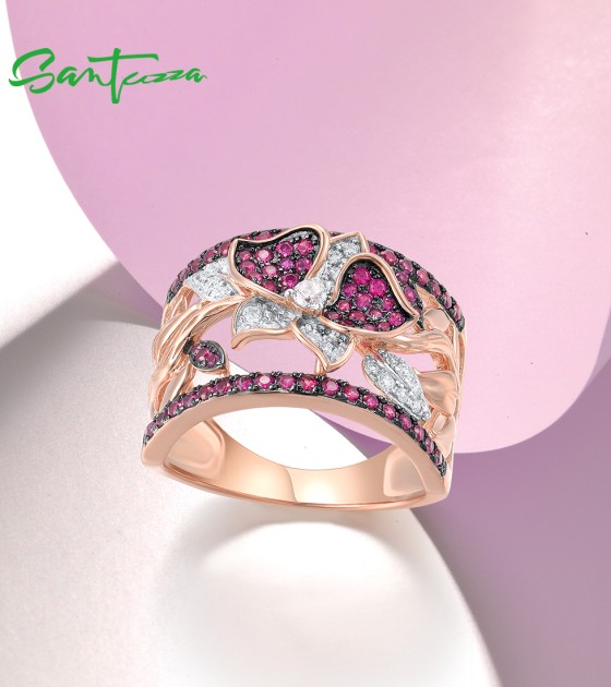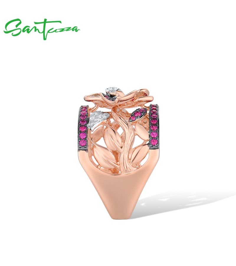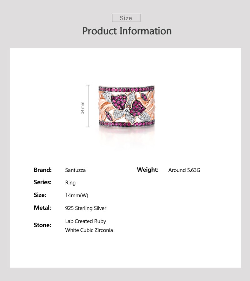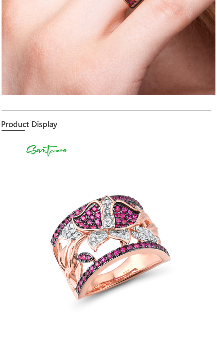 SANTUZZA 925 Sterling Silver Rings Lab Created Ruby Lifelike Butterfly Ring Jewelry