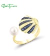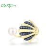 SANTUZZA 925 Sterling Silver Adjustable Rings Blue Nano CZ White Shell Beads Fine Jewelry