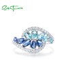 SANTUZZA 925 Sterling Silver Rings Marquise Blue Spinel White CZ Original anillos Fine Jewelry