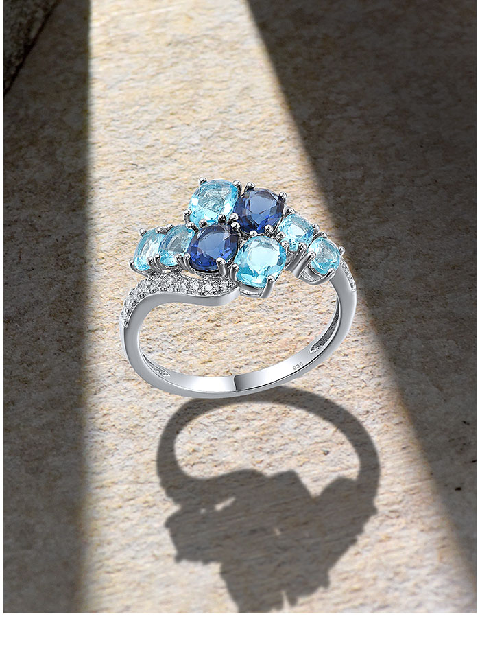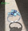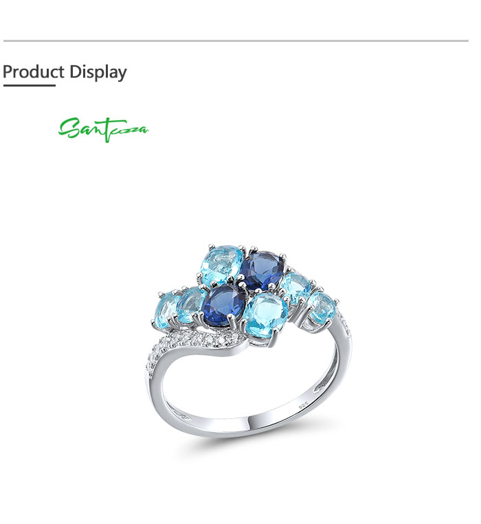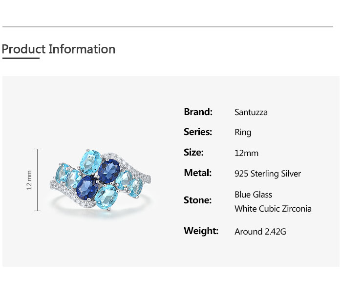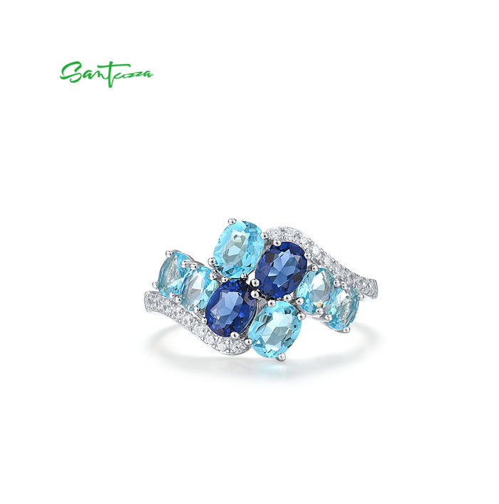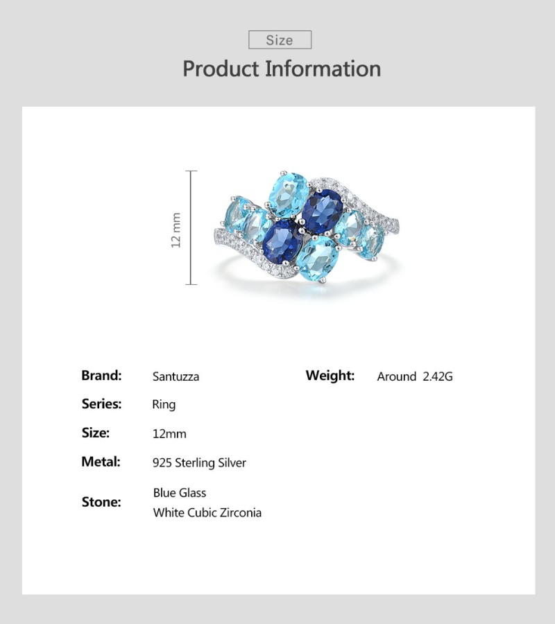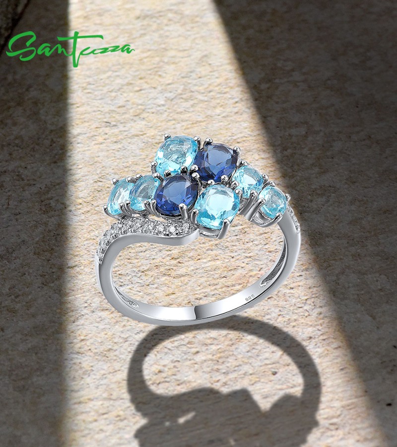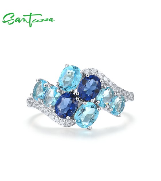 SANTUZZA 925 Sterling Silver Rings Oval Blue Gemstone Round White CZ Cluster Fine Jewelry