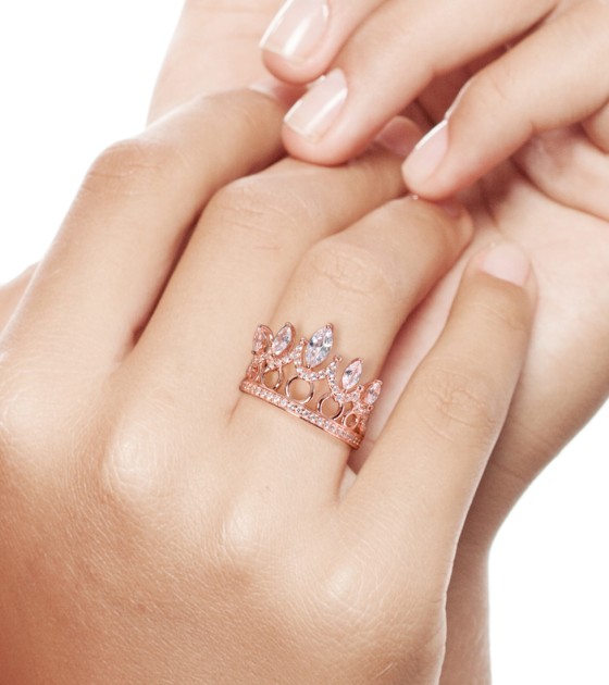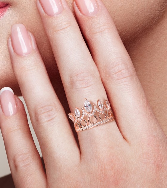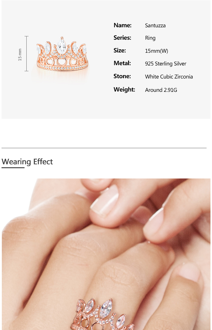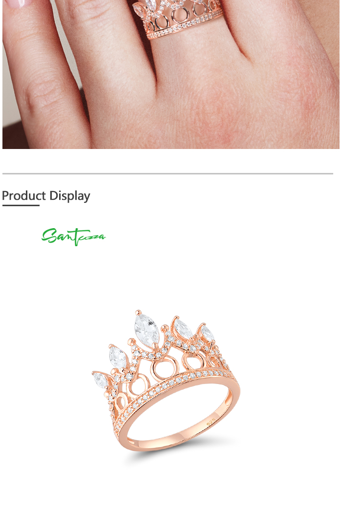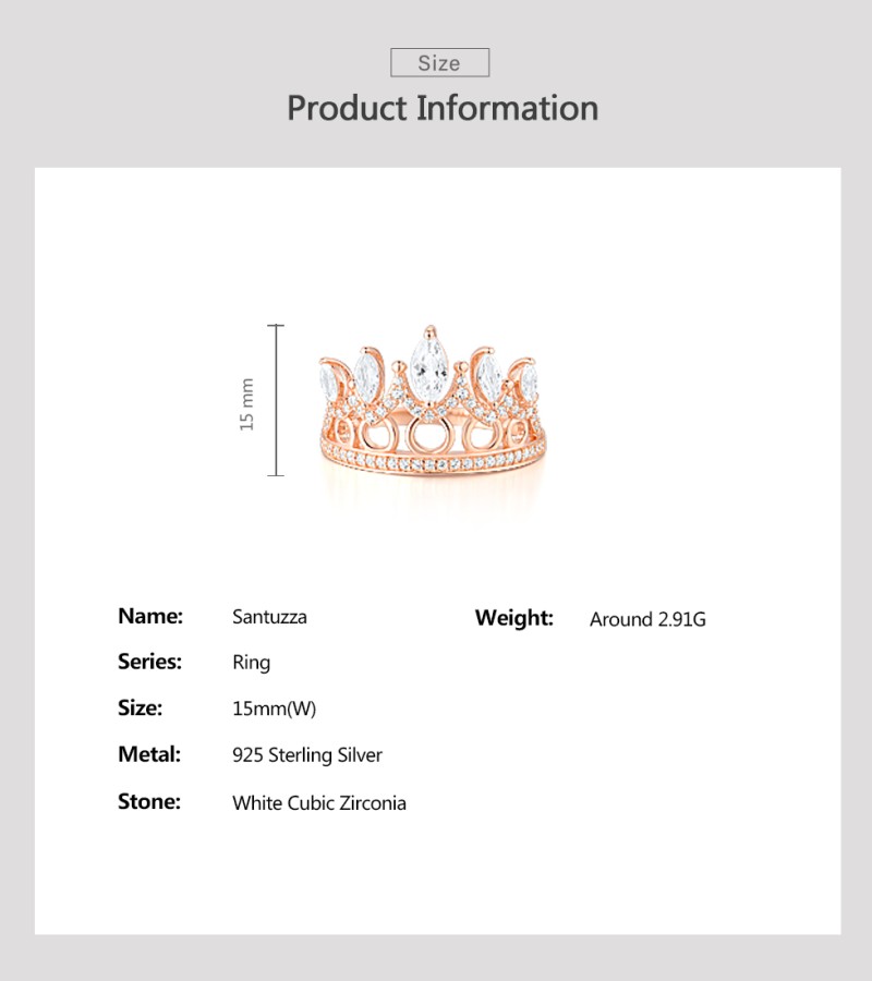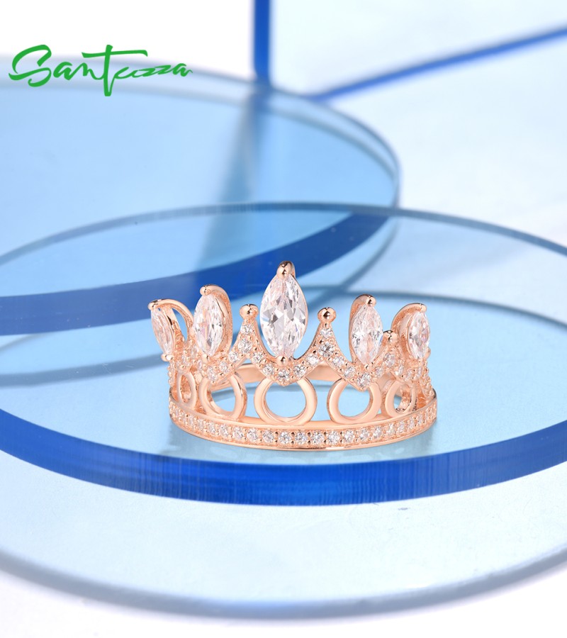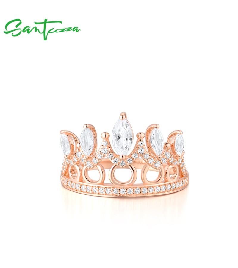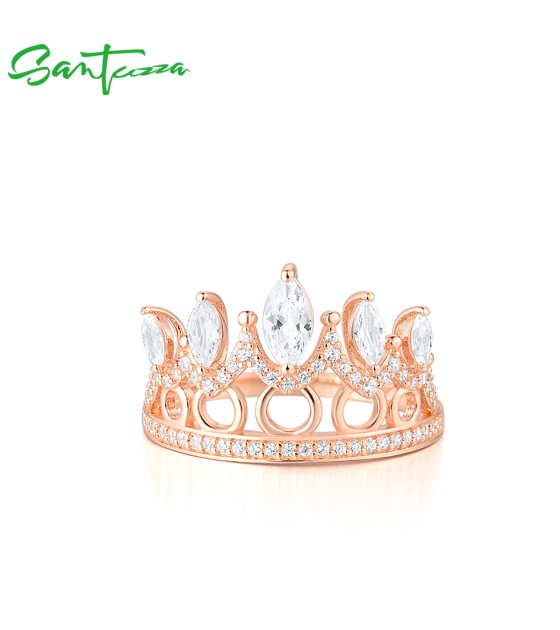 SANTUZZA Silver Ring 925 Sterling Silver Rose Gold Color Royal Crown Jewelry