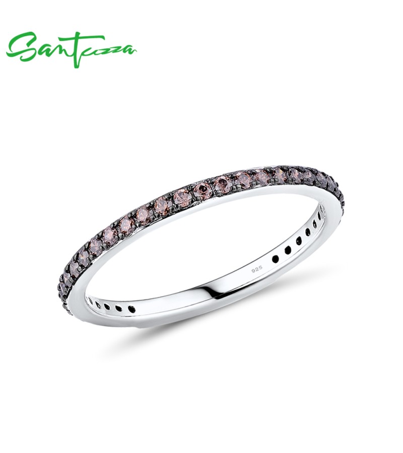 SANTUZZA 925 Sterling Silver Rings Chocolate CZ Gemstones Finger Stackable Fine Jewelry