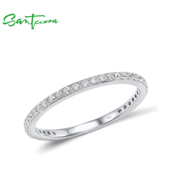SANTUZZA 925 Sterling Silver Rings White Cubic Zirconia Finger Stackable Fine Jewelry - US 9