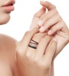 SANTUZZA 925 Sterling Silver Rings Black spinel Finger Stackable Fine Jewelry - US 8.5