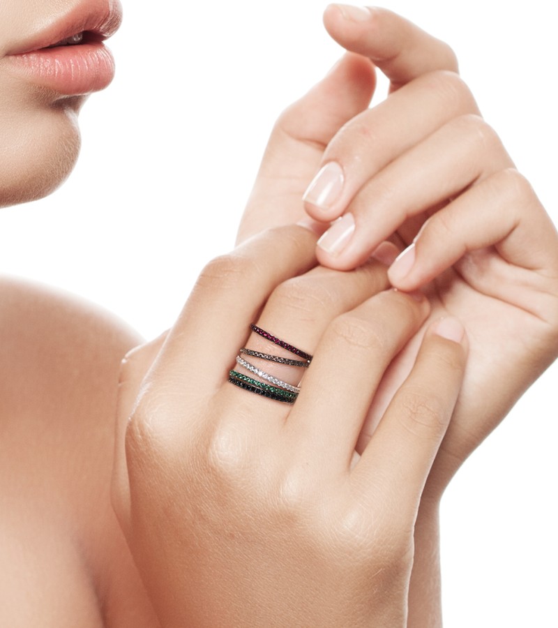 SANTUZZA 925 Sterling Silver Rings Black spinel Finger Stackable Fine Jewelry - US 7.5