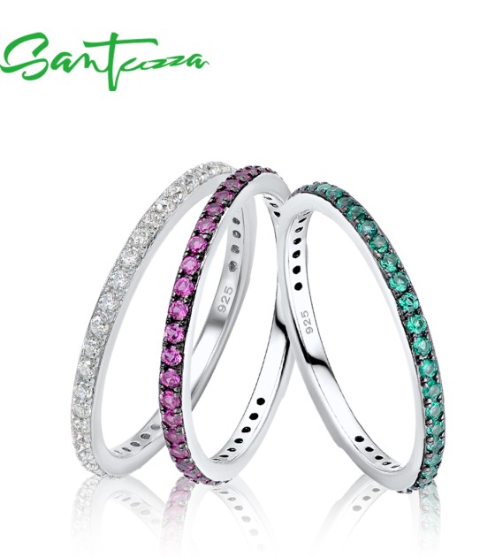 SANTUZZA 925 Sterling Silver Rings White Cubic Zirconia Finger Stackable Fine Jewelry