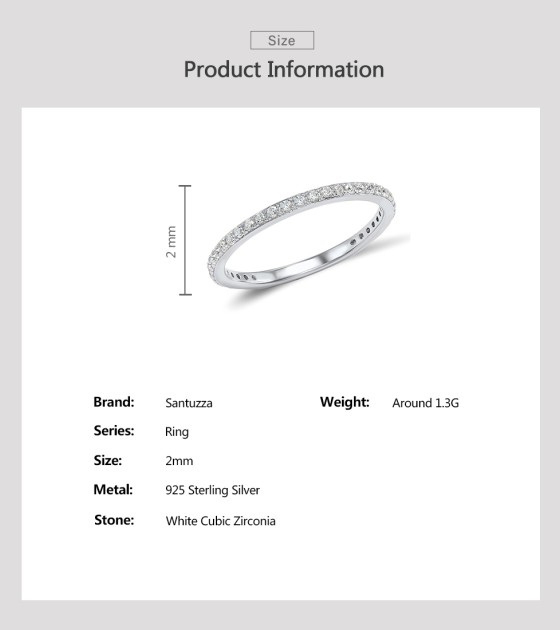 SANTUZZA 925 Sterling Silver Rings White Cubic Zirconia Finger Stackable Fine Jewelry - US 5.5
