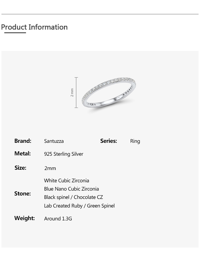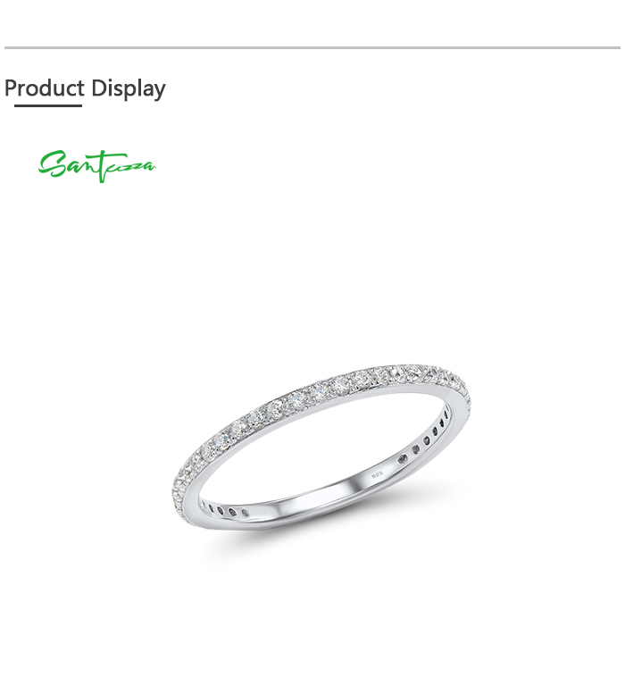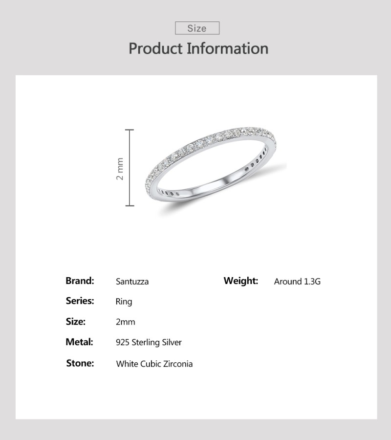 SANTUZZA 925 Sterling Silver Rings White Cubic Zirconia Finger Stackable Fine Jewelry - US 7.5