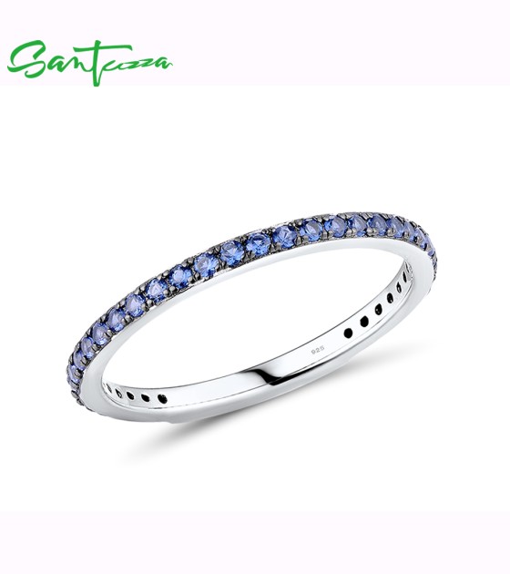 SANTUZZA 925 Sterling Silver Rings Blue Nano Cubic Zirconia Finger Stackable Fine Jewelry