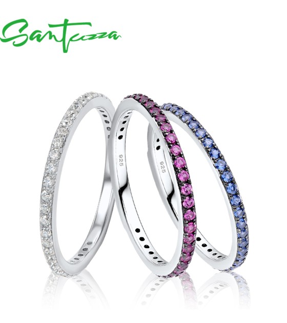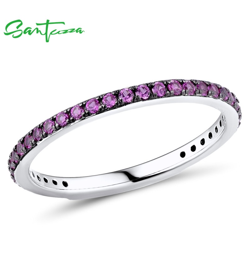 SANTUZZA 925 Sterling Silver Rings Created Ruby Finger Stackable Fine Jewelry
