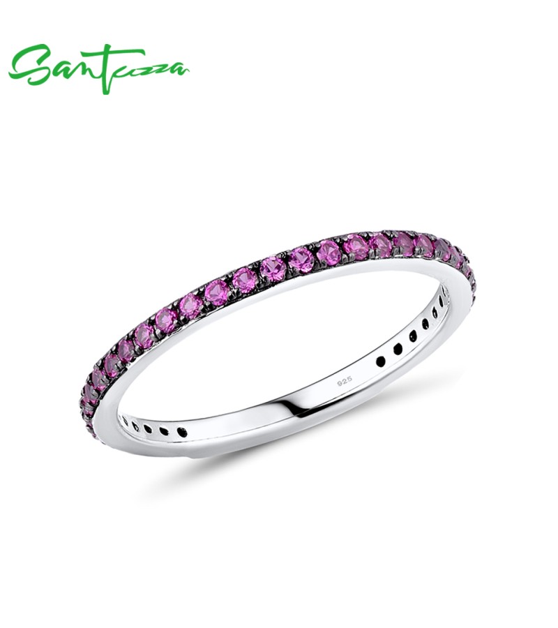 SANTUZZA 925 Sterling Silver Rings Created Ruby Finger Stackable Fine Jewelry