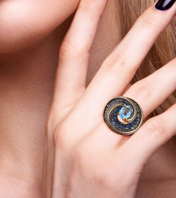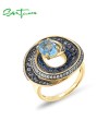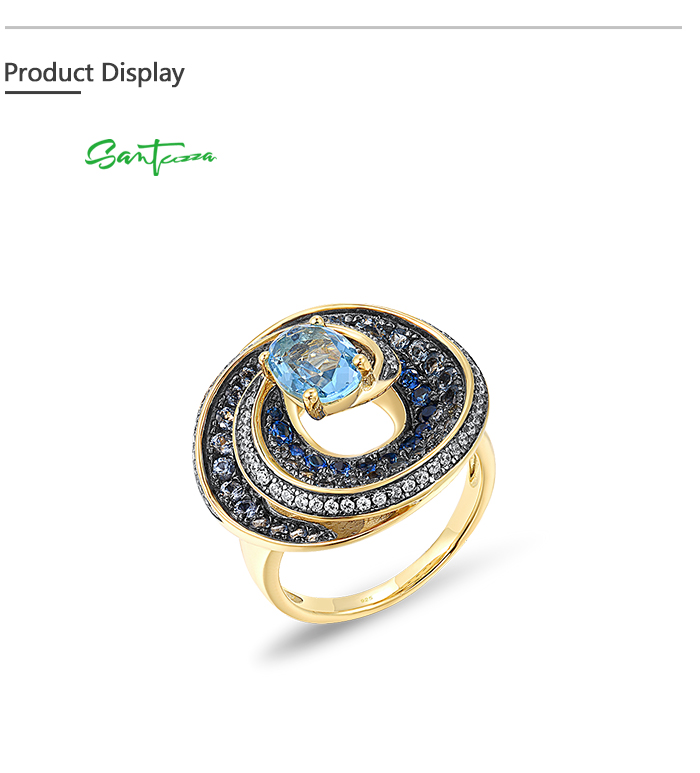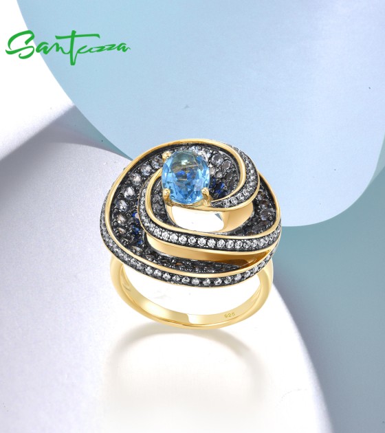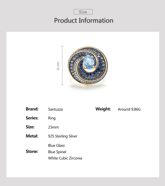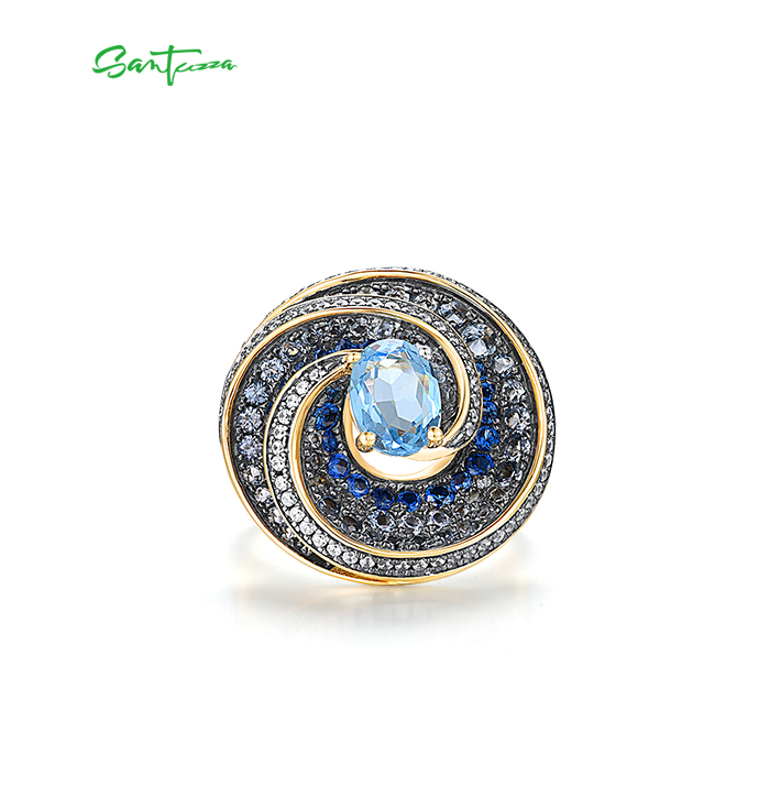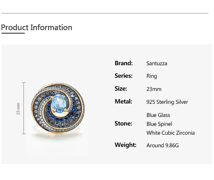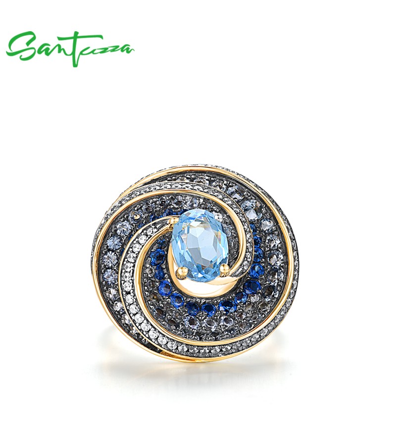SANTUZZA Silver 925 Sterling Silver Ring Blue Stones White CZ Fine Jewelry
