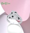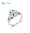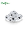 SANTUZZA 925 Sterling Silver Leopard Ring Black Spinels White CZ Panther Wild Animal Fine Jewelry