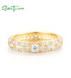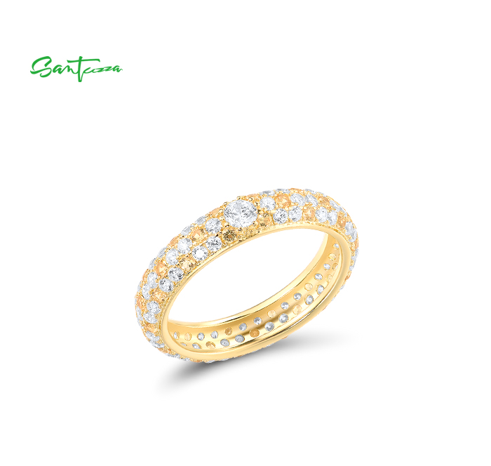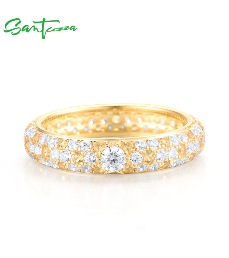 SANTUZZA 925 Sterling Silver Rings Yellow Nano Crystal Stackable Fine Jewelry