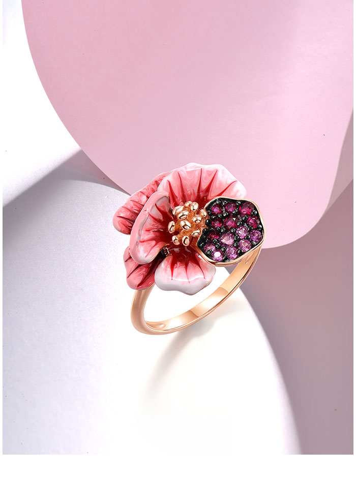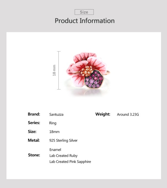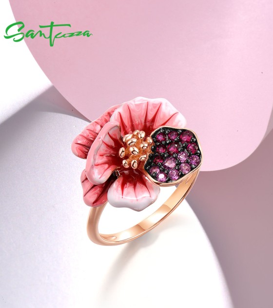 SANTUZZA 925 Sterling Silver Ring Created Red Sapphire Enamel Fancy Jewelry