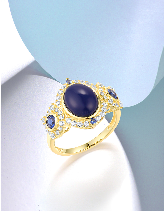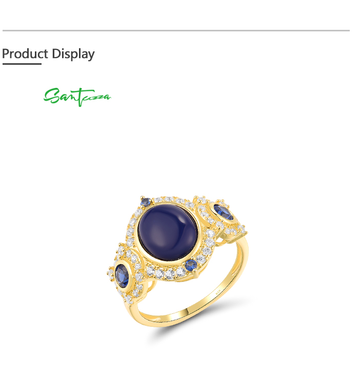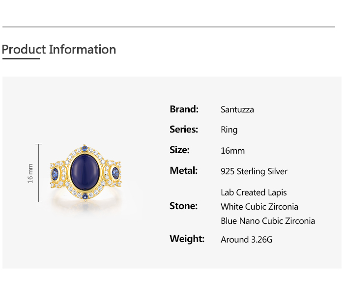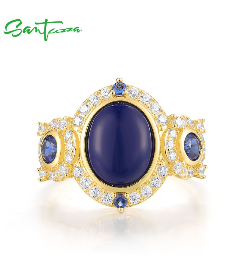 SANTUZZA 925 Sterling Silver Rings White Blue CZ Created Lapis Jewelry