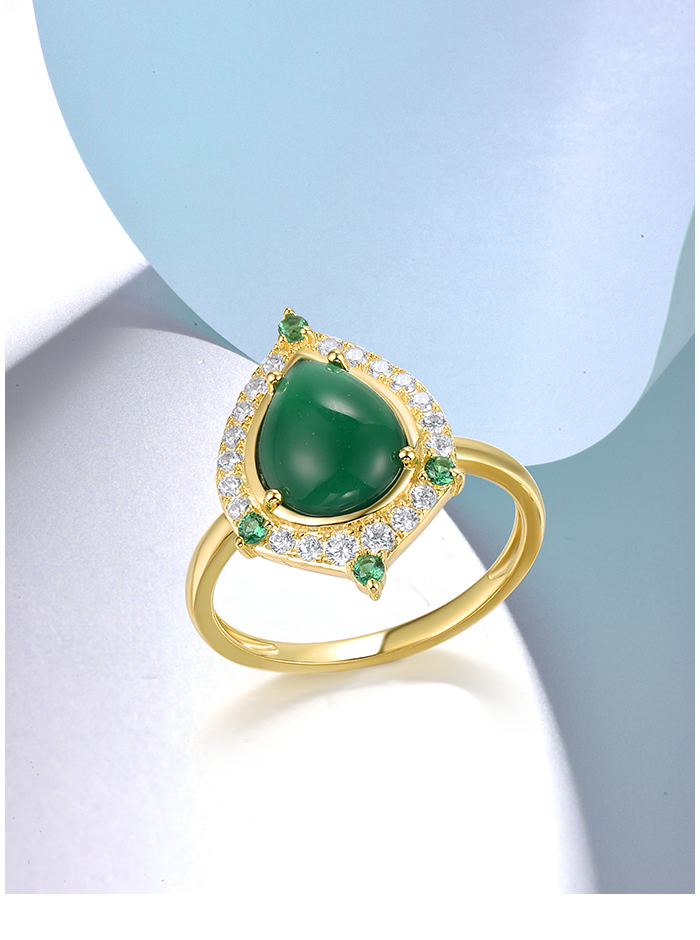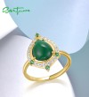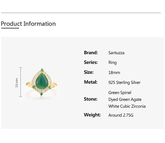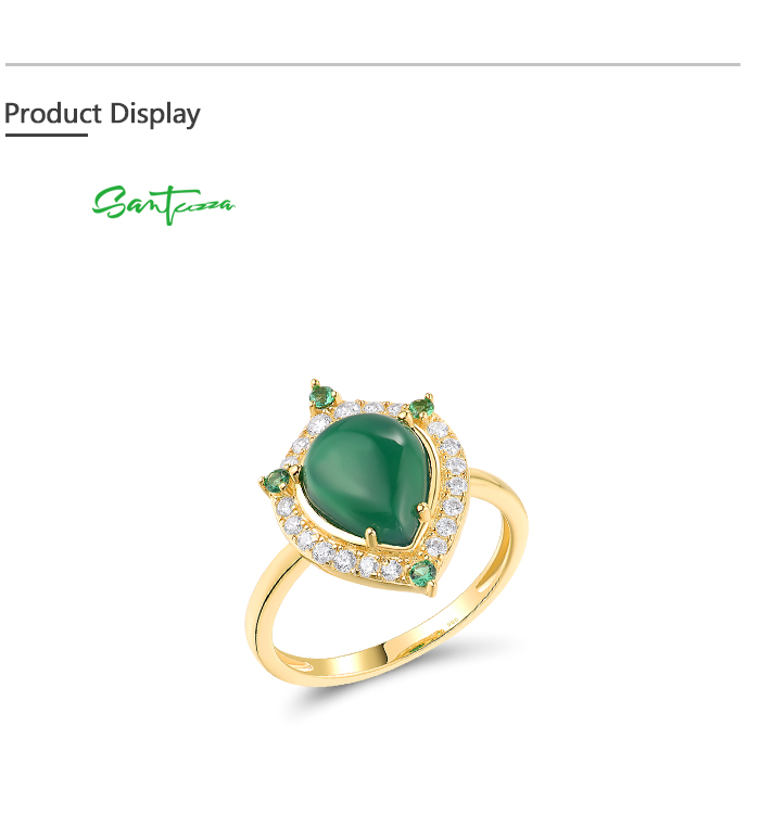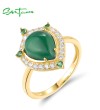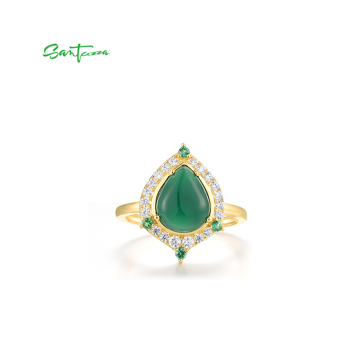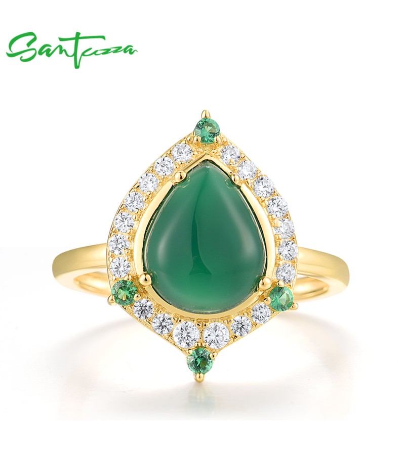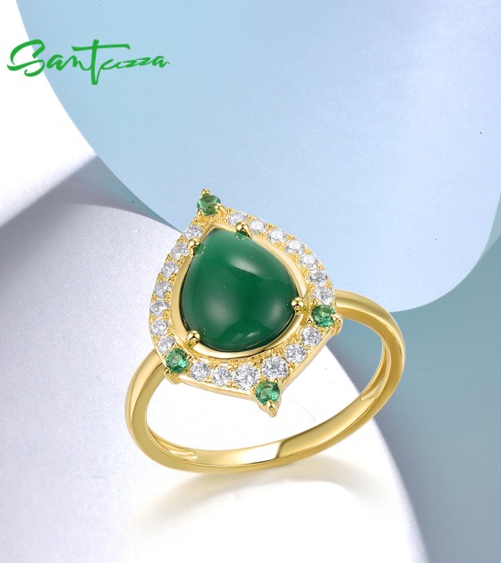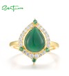 SANTUZZA 925 Sterling Silver Rings White CZ Dyed Green Agate Jewelry