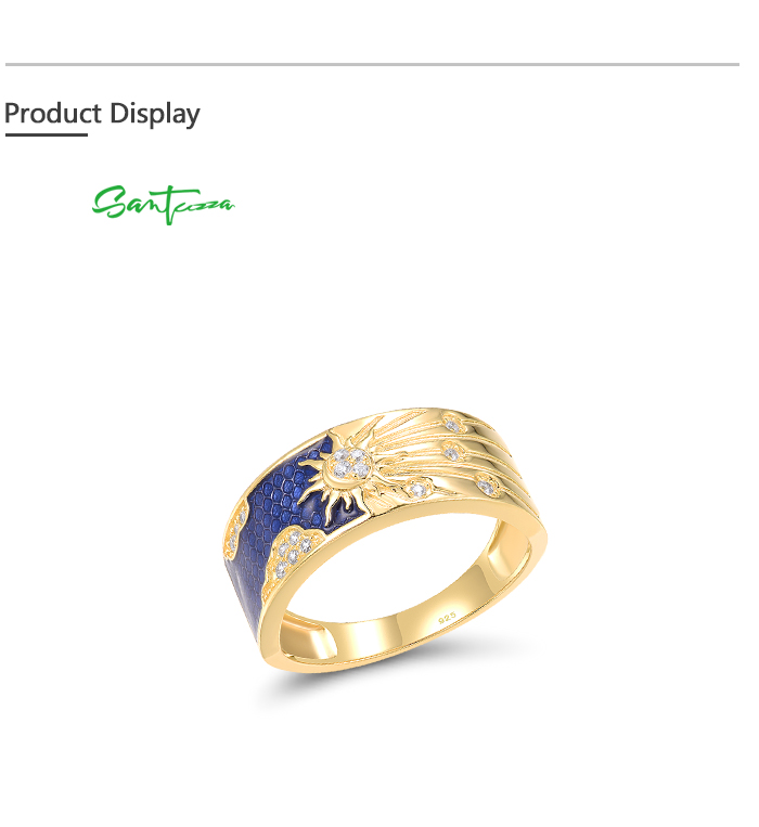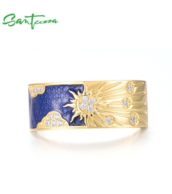 SANTUZZA 925 Sterling Silver Rings White CZ Creative Enamel Blue Sky&Sun Jewelry