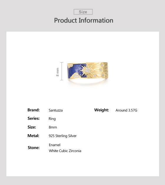 SANTUZZA 925 Sterling Silver Rings White CZ Creative Enamel Blue Sky&Sun Jewelry - US 8