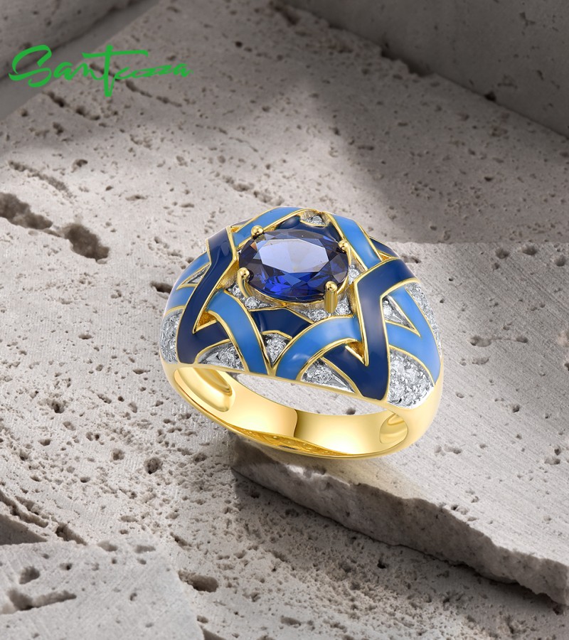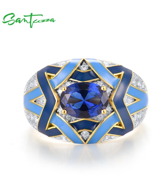 SANTUZZA 925 Sterling Silver Rings Blue Spinel Grand Enamel Jewelry