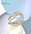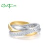 SANTUZZA 925 Sterling Silver Twisted Two Color Rings White Cubic Zirconia Jewelry