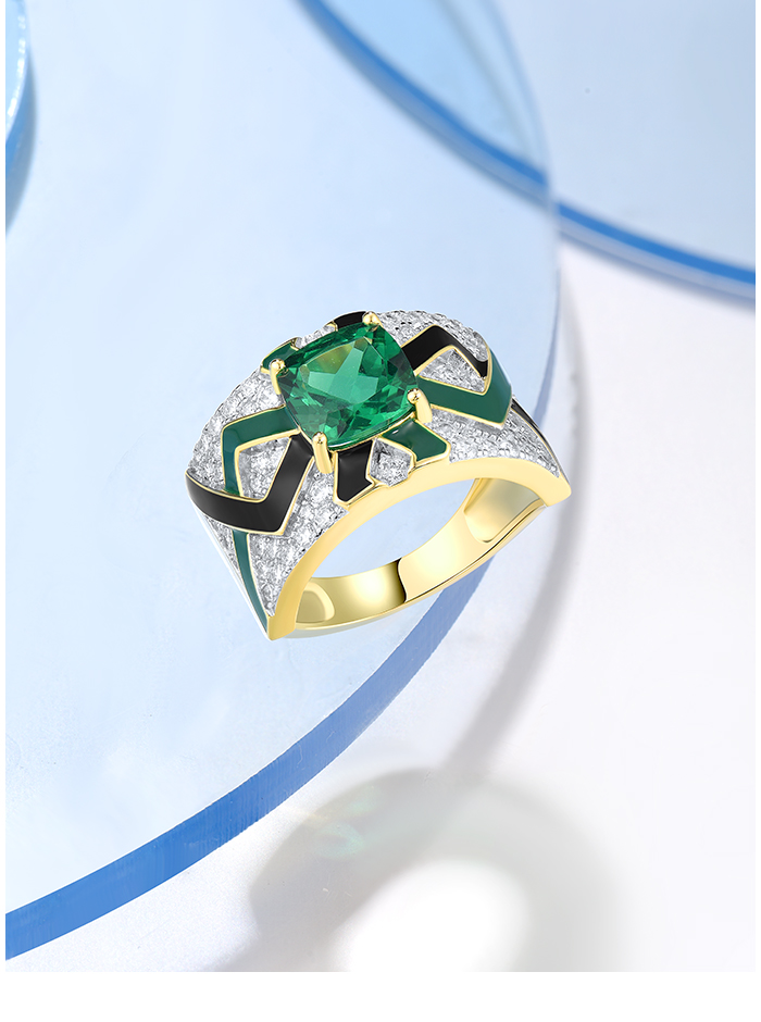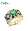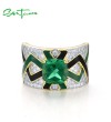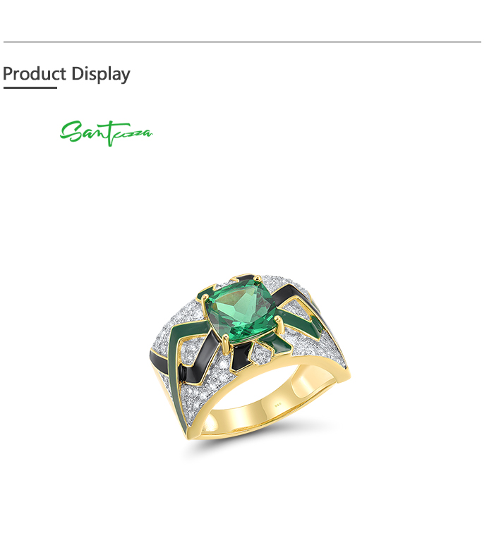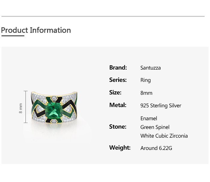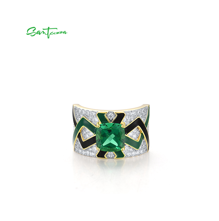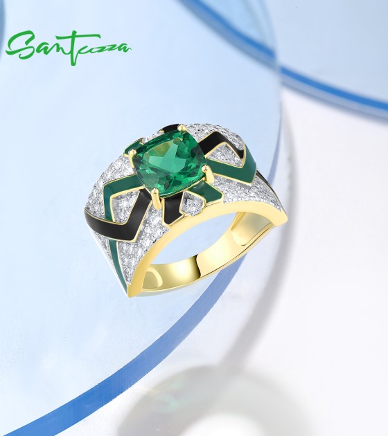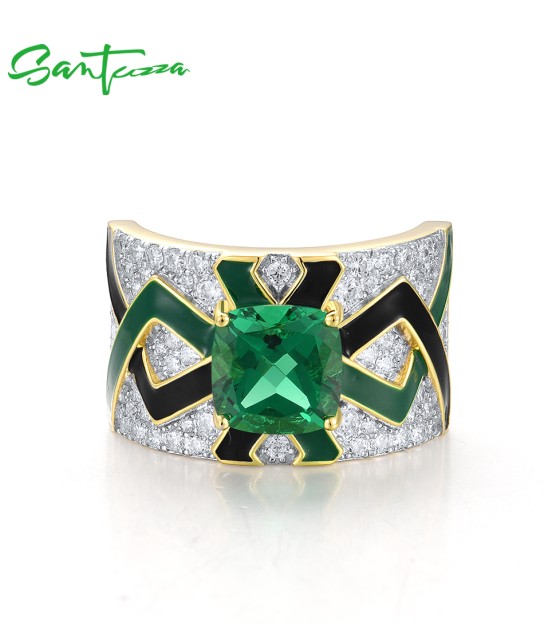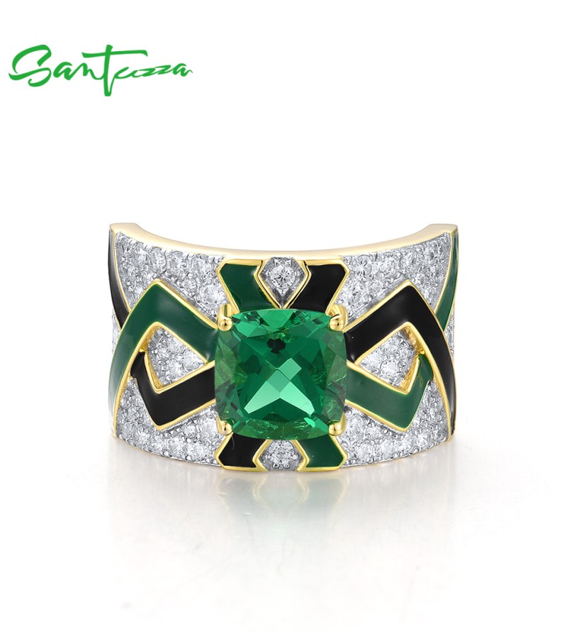 SANTUZZA 925 Sterling Silver Rings Green Spinel Grand Enamel Innovative Jewelry