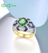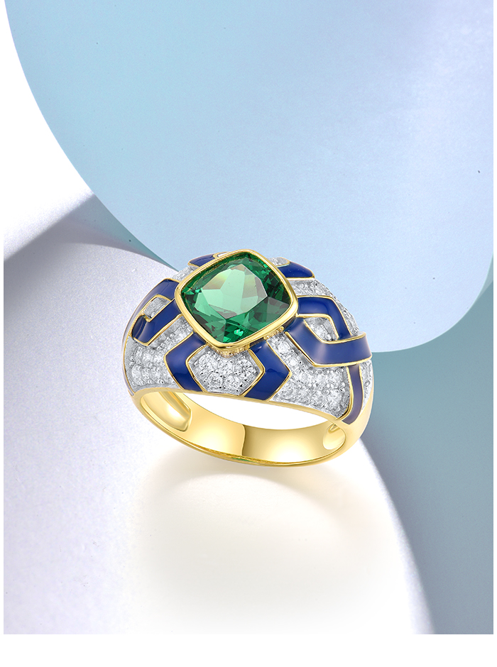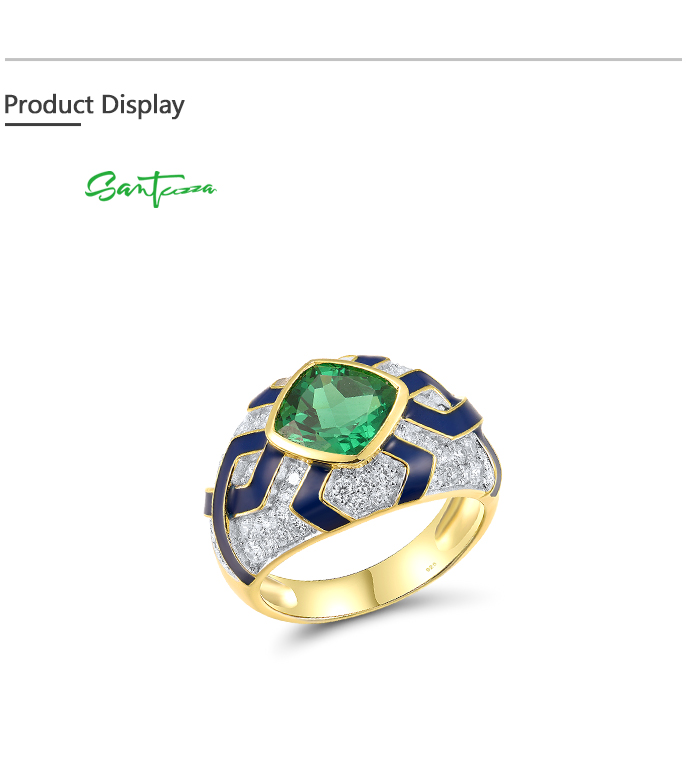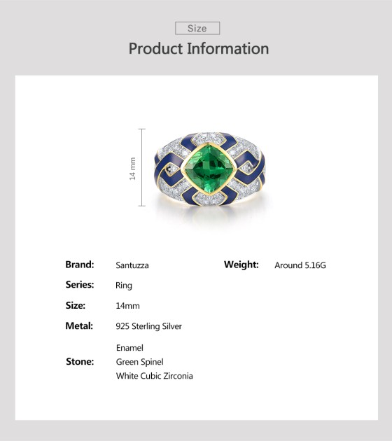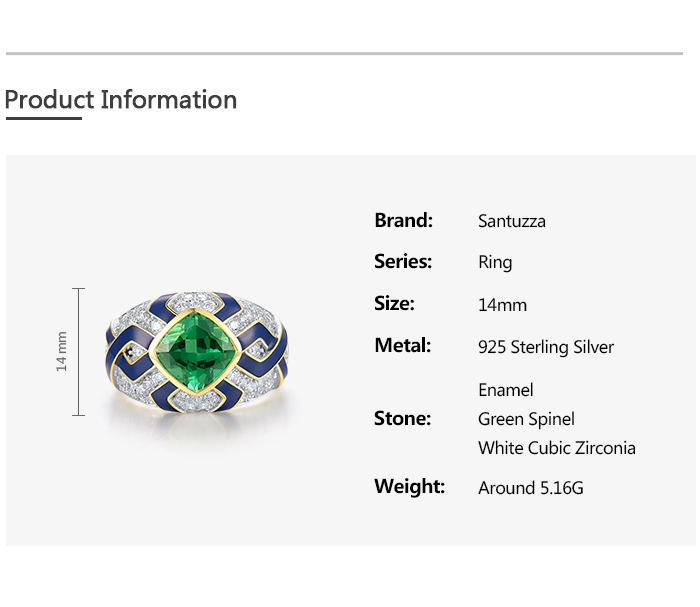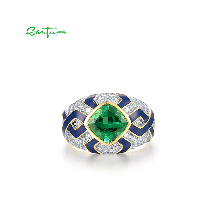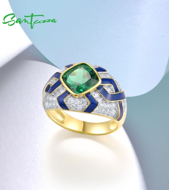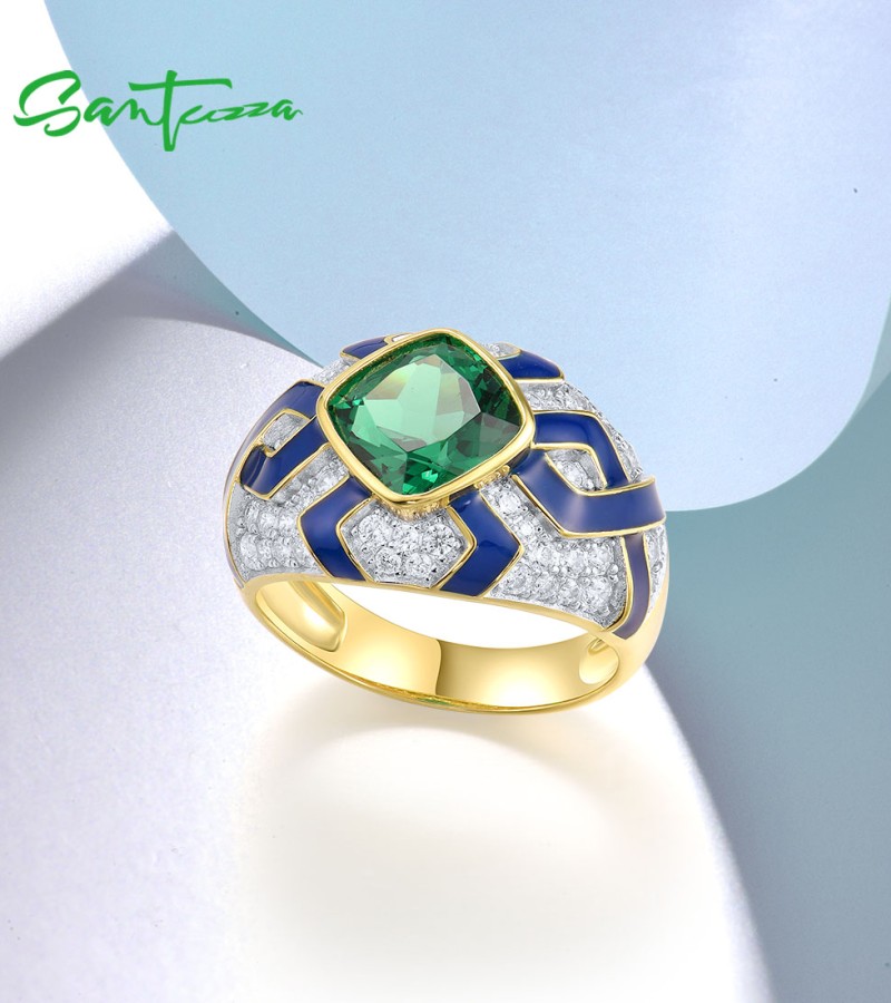 SANTUZZA 925 Sterling Silver Rings Green Spinel Modern Enamel Jewelry