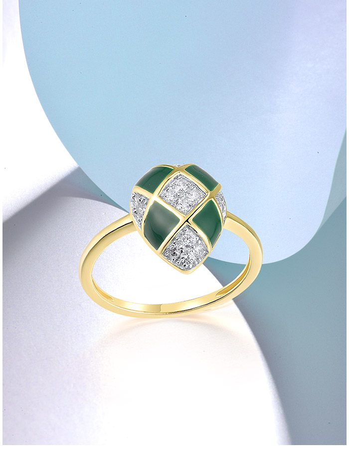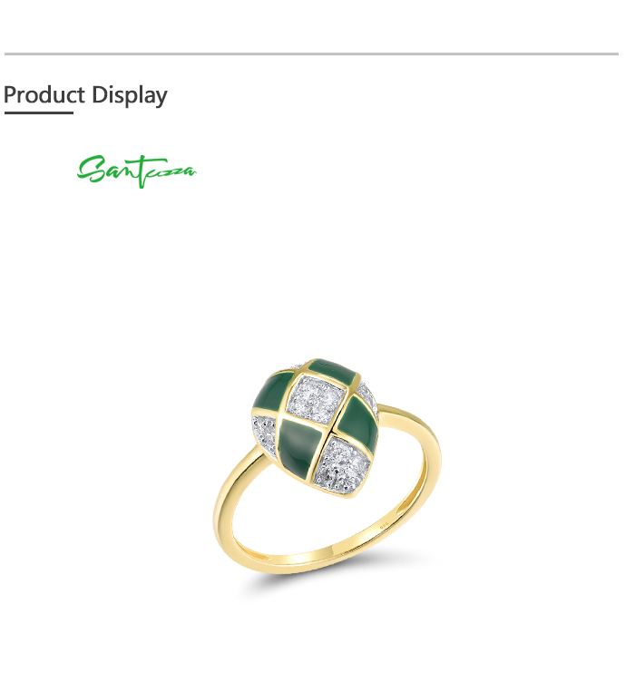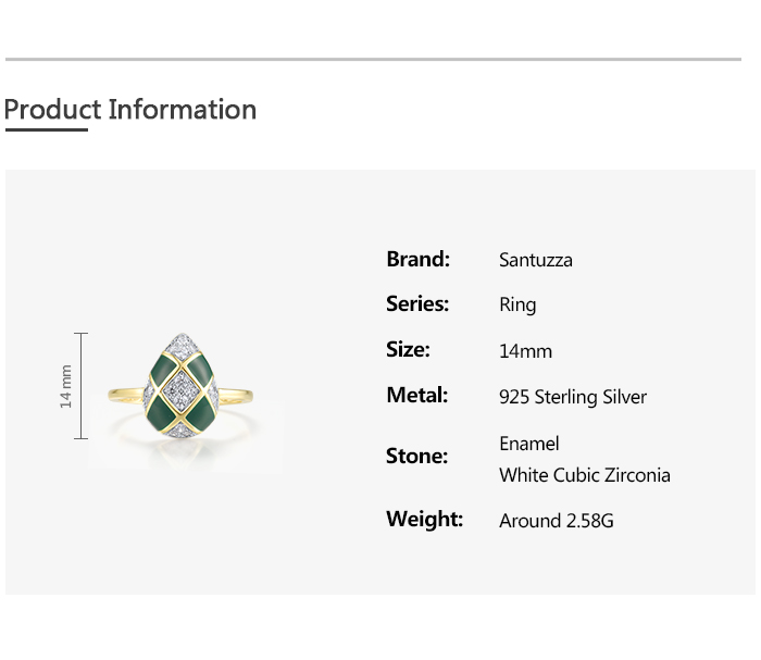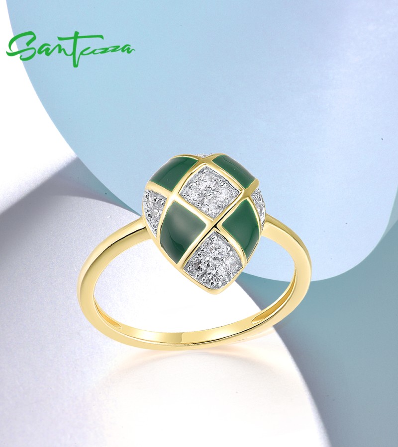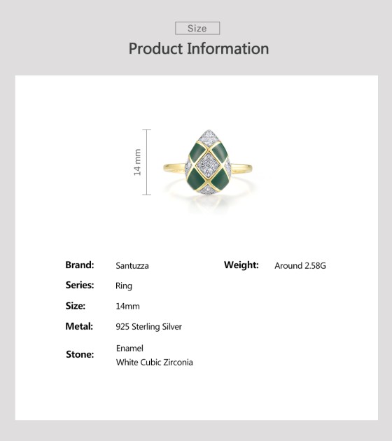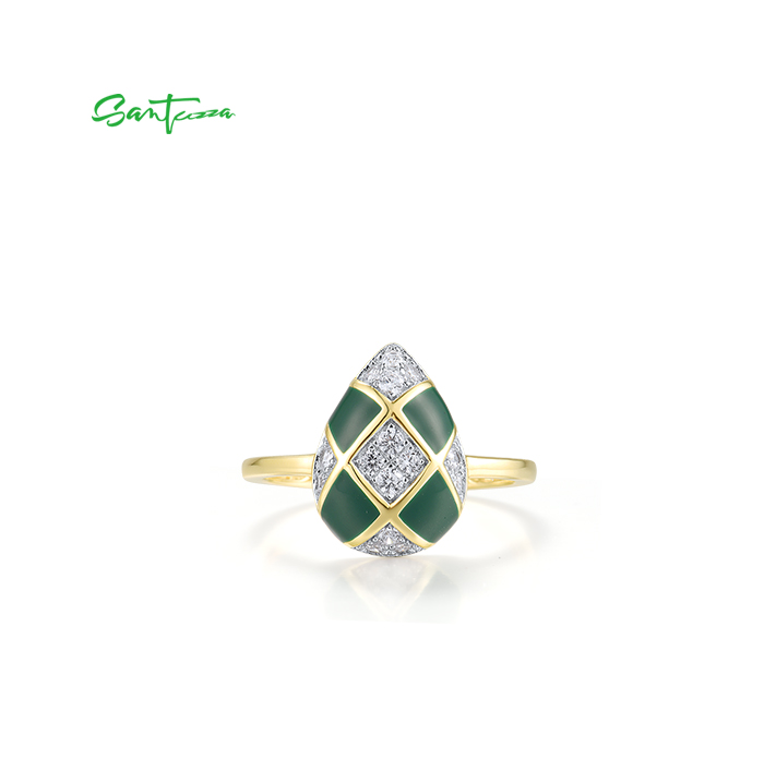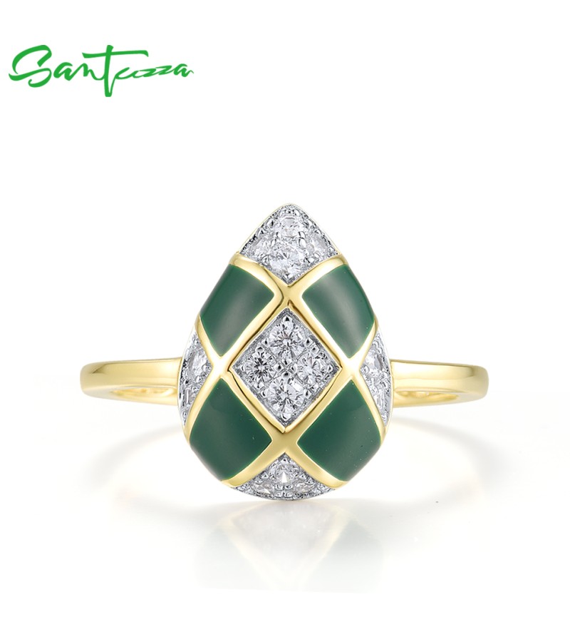 SANTUZZA 925 Sterling Silver Rings White CZ Green Pear Enamel Jewelry