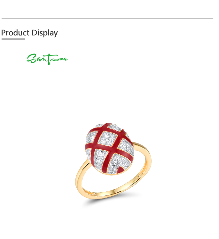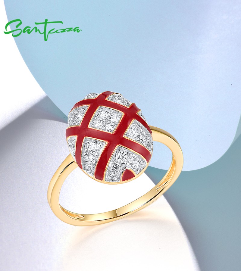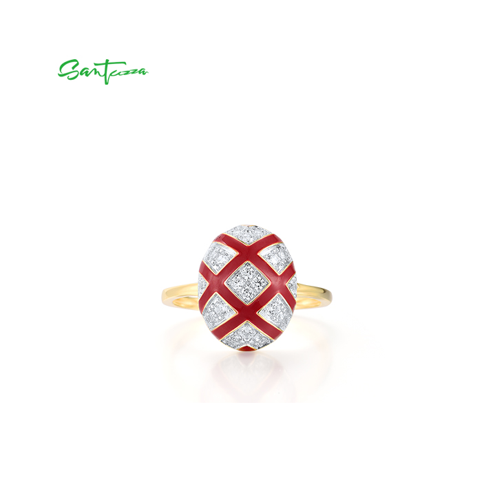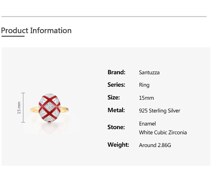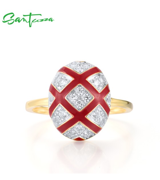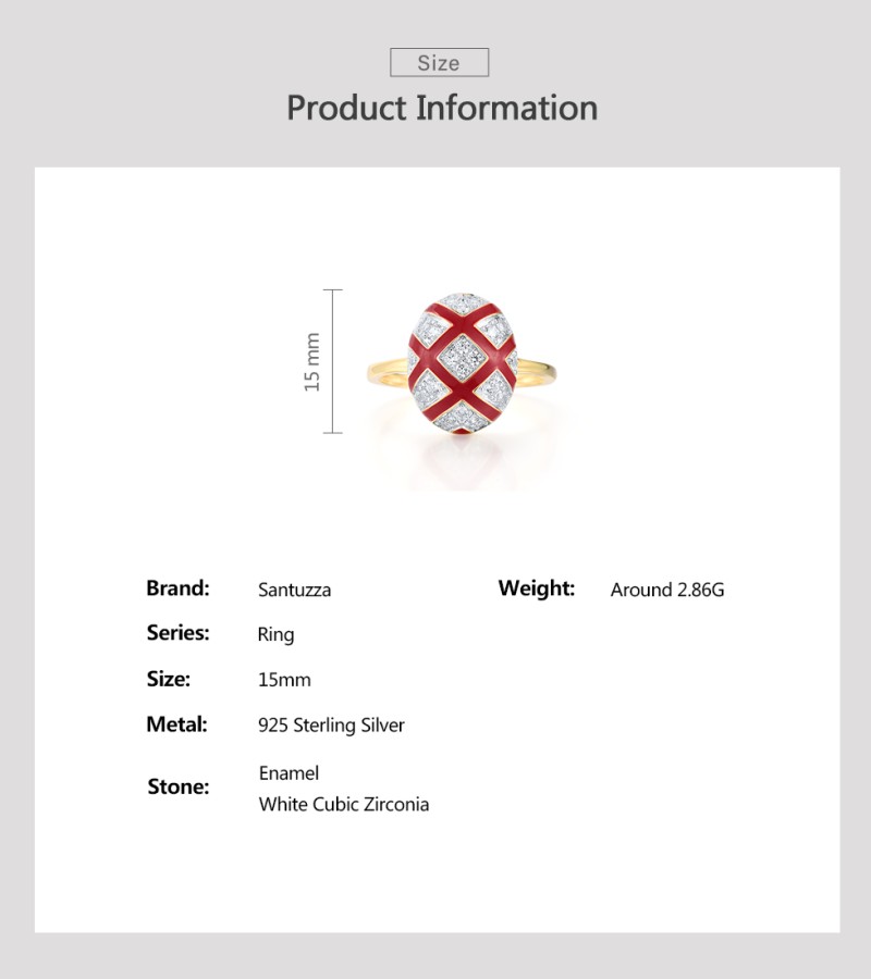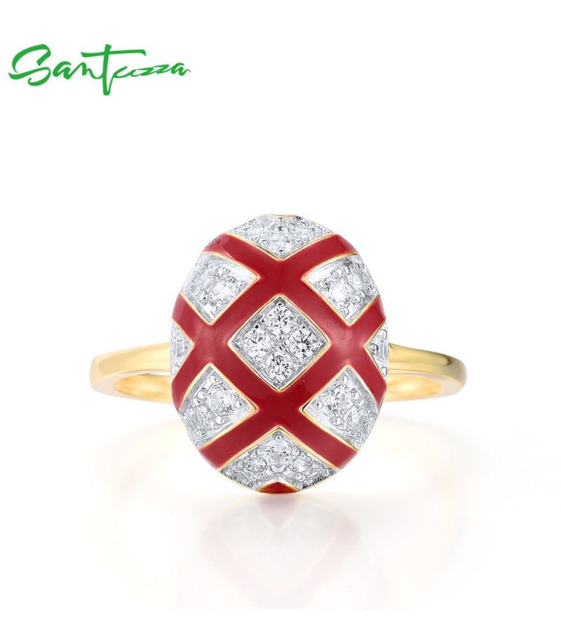 SANTUZZA 925 Sterling Silver Rings White CZ Red Oval Cross Enamel Jewelry